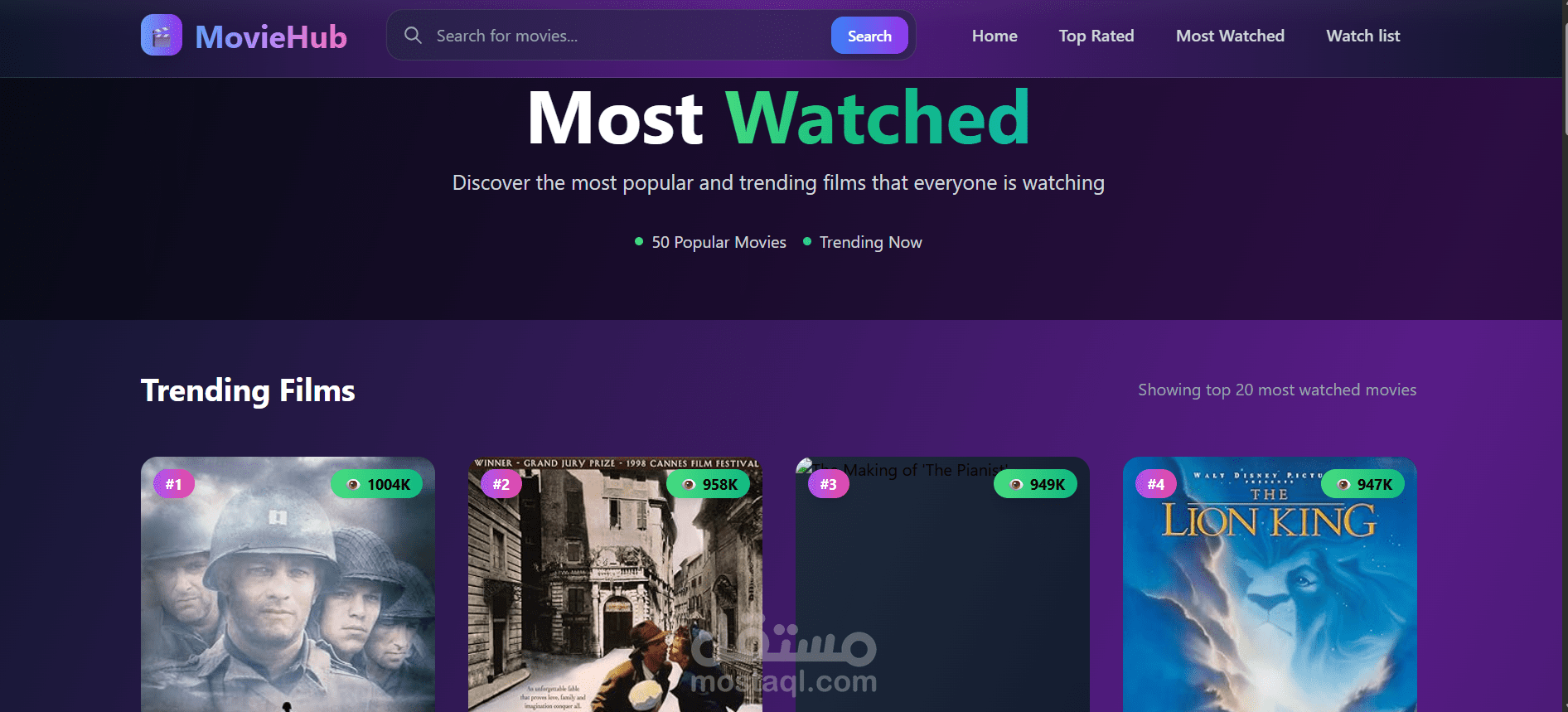 Description: I designed and developed a fully responsive Single Page Application (SPA) for movie enthusiasts to explore trending and top-rated films. The application mimics the functionality of modern streaming platforms, providing a seamless user experience with dynamic content fetching.