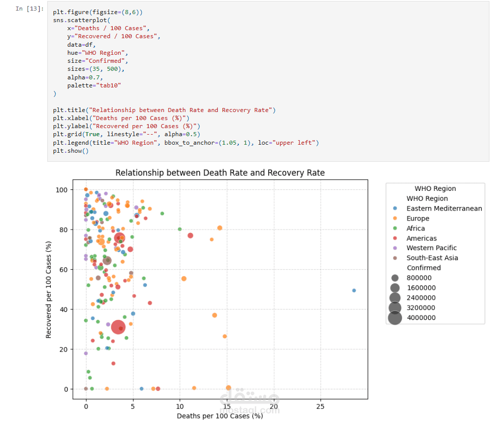 كلما زادت معدلات التعافي انخفضت معدلات الوفيات — علاقة عكسية واضحة.