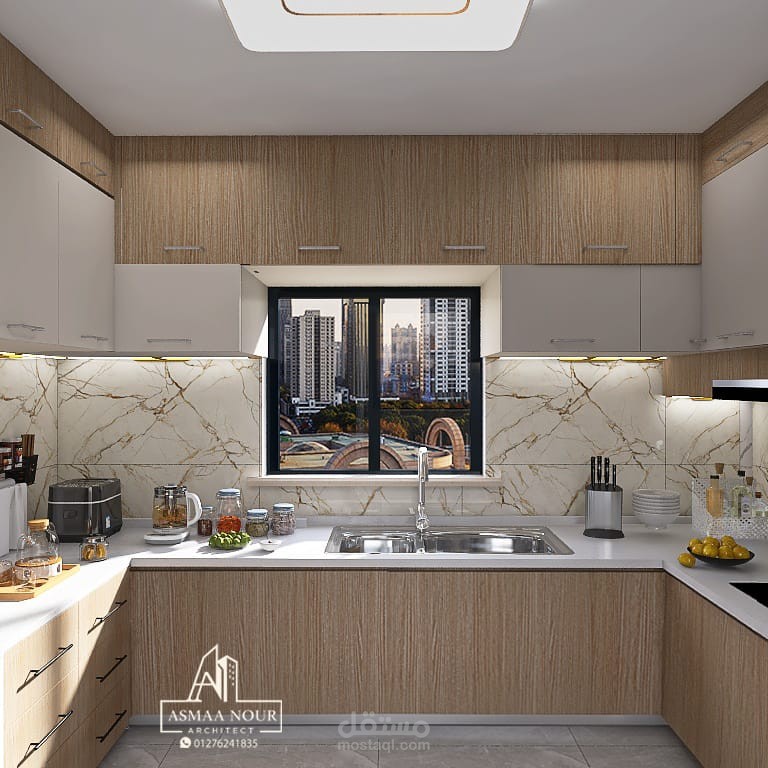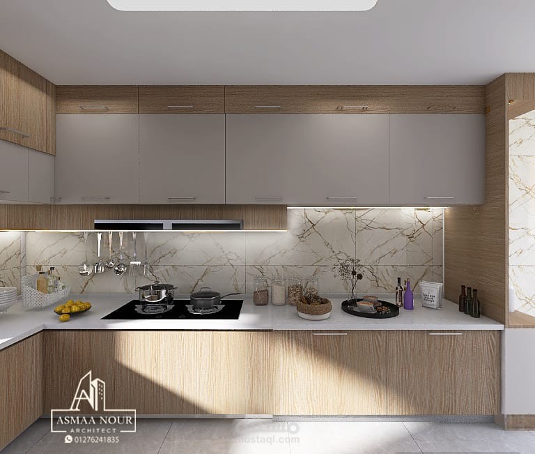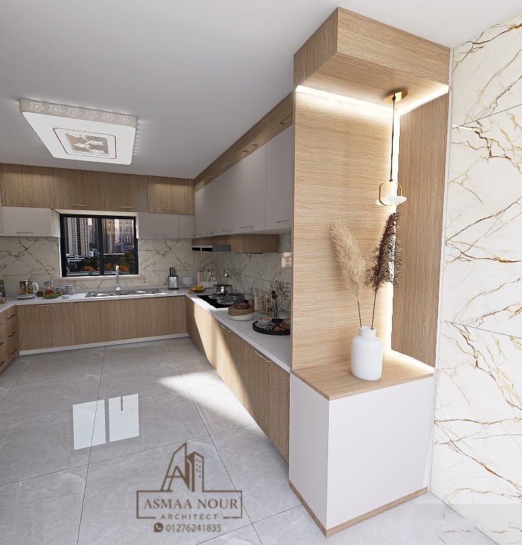 a modern kitchen design featuring an elegant blend of khashmonium, combining luxury and durability in every detail.