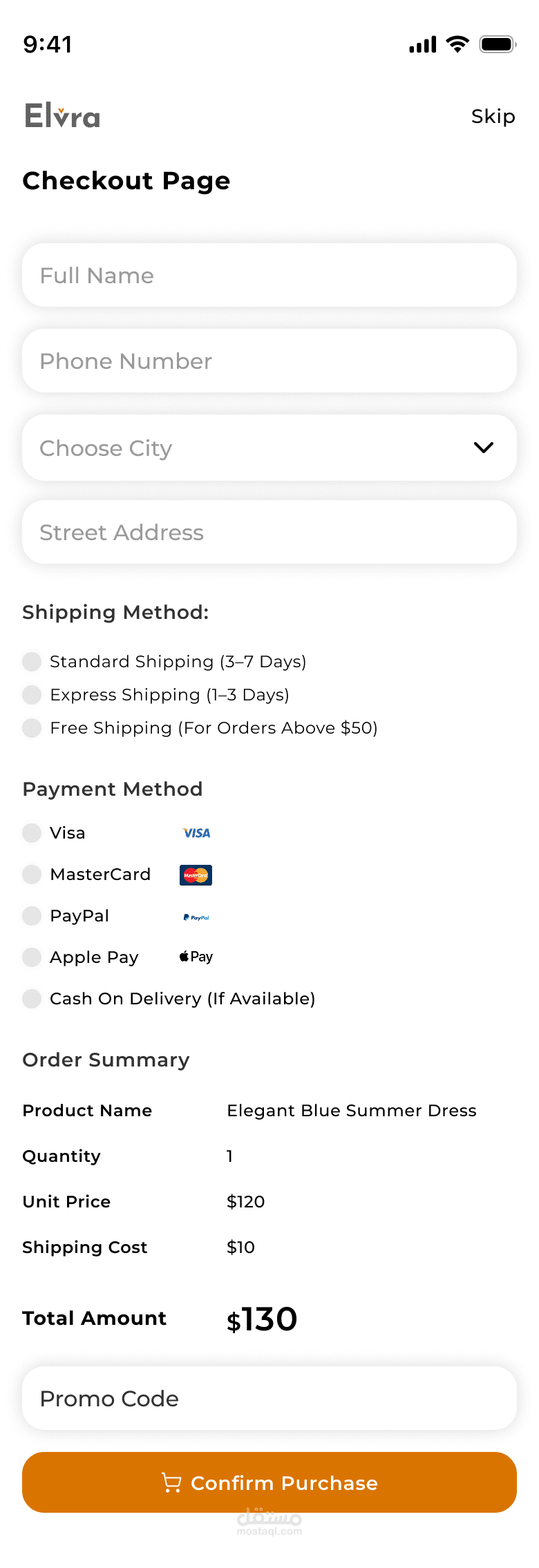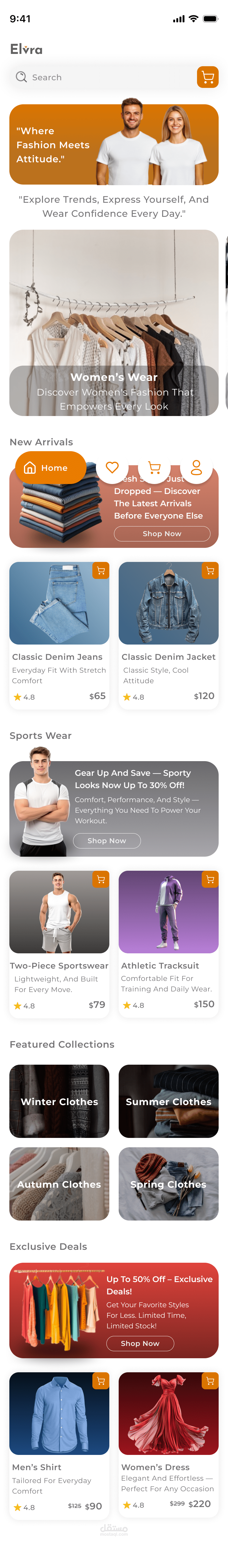 Elvra – Fashion E‑Commerce App هو مشروع تصميم واجهة مستخدم وتجربة استخدام (UI/UX) لتطبيق تسوّق أزياء. الهدف من المشروع كان إعادة تصميم تجربة التسوّق التقليدية وتحويلها إلى واجهة حديثة، جذّابة، وسهلة الاستخدام تتيح للمستخدمين تصفح وشراء الملابس والأزياء بكل سلاسة.