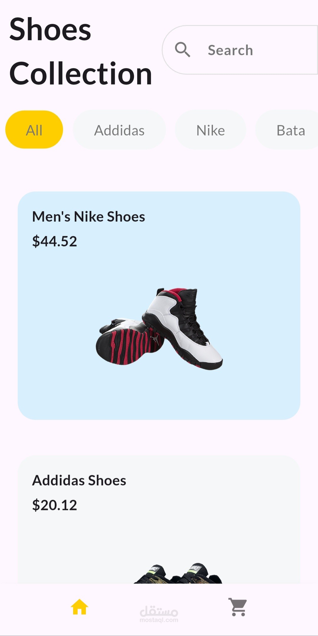 واجهة مستخدم بسيطة وسلسة لتسهيل التصفح والبحث عن الأحذية المفضلة.