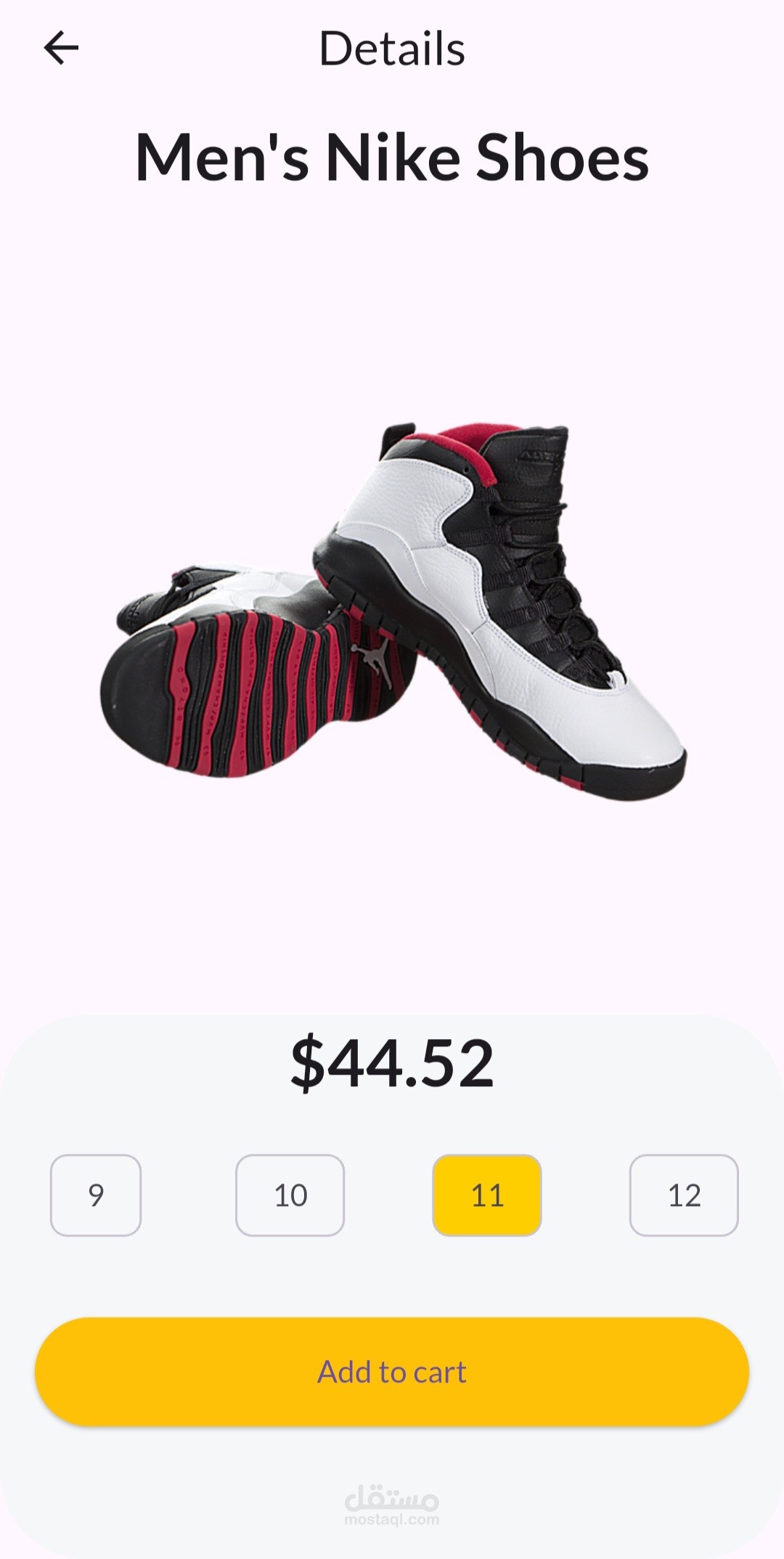 إضافة الأحذية بسهولة مع إمكانية اختيار المقاسات المتاحة.