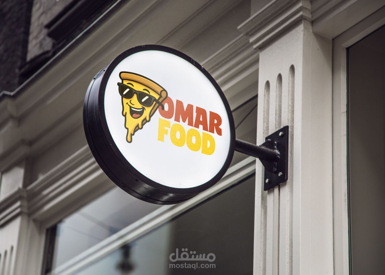 Logo for a local fast food restaurant called omar food. The logo type is comic mascot.