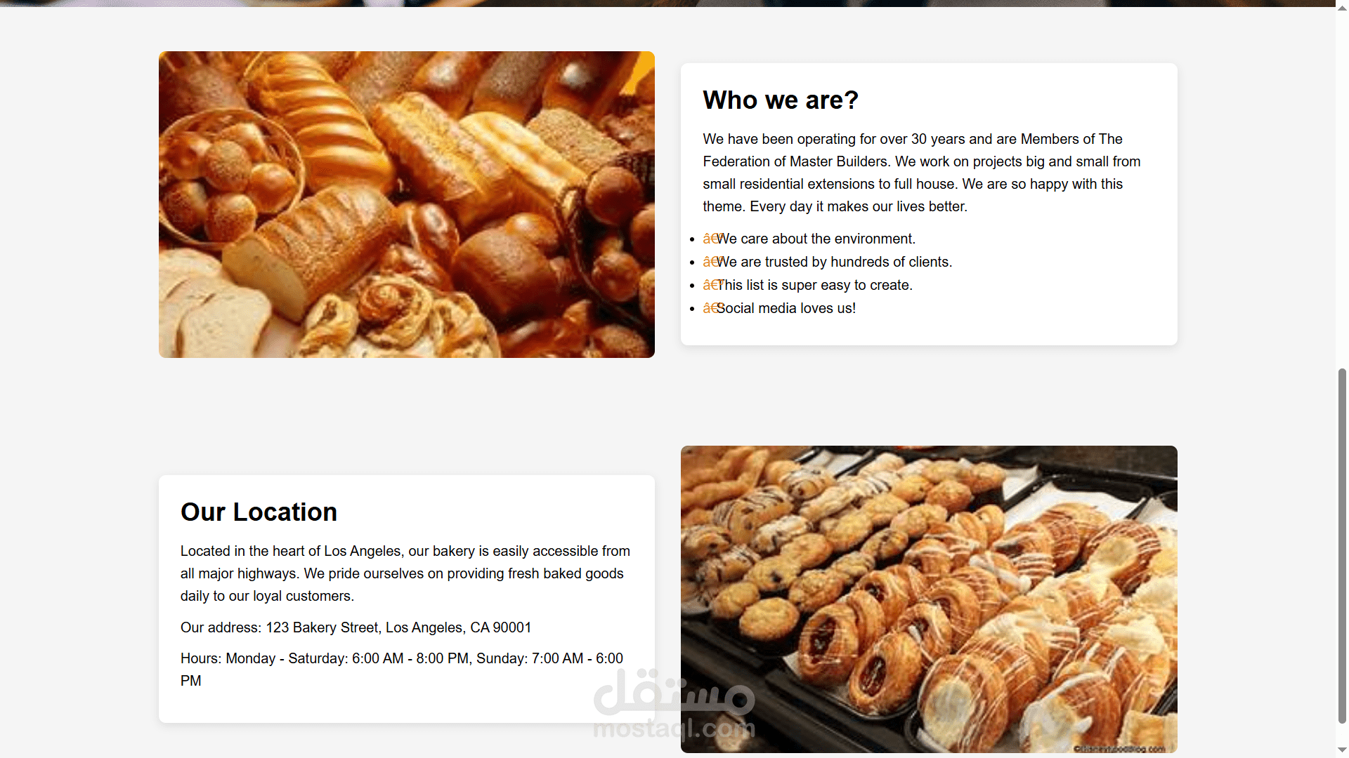 صفحه لبيع المخبوزات مع معلومات و صور للمتجر
