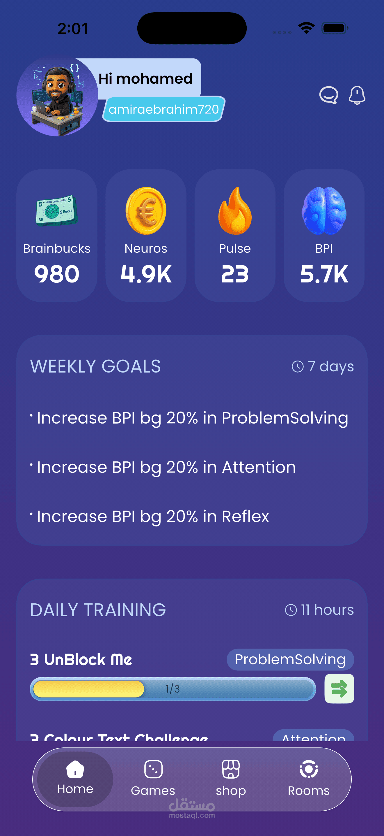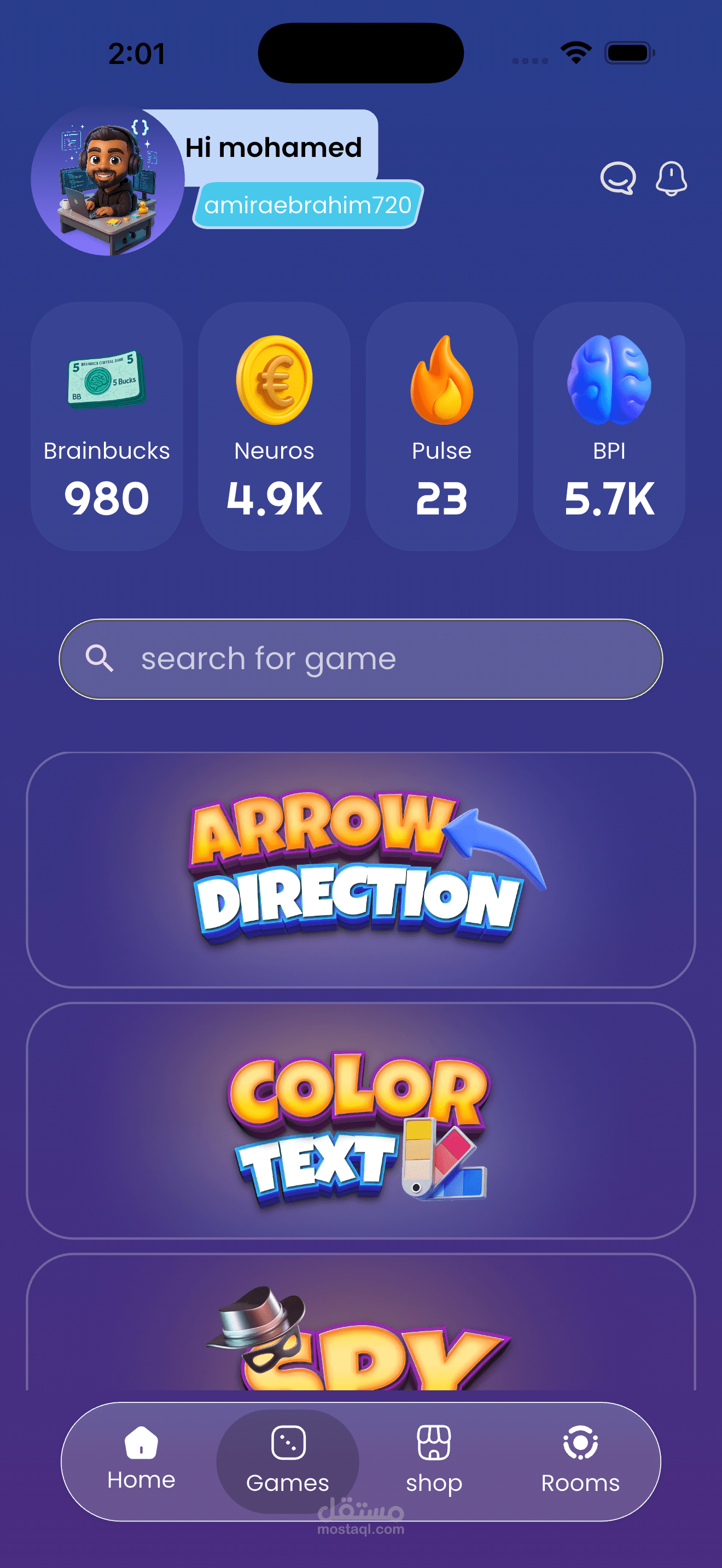 فكرة المشروع: تطبيق مبني باستخدام Flutter يهدف إلى تدريب الدماغ وتنمية المهارات المعرفية والمنطقية من خلال مجموعة متنوعة من الألعاب والتحديات الممتعة. التطبيق مصمم لجميع الأعمار ويدعم ميزات متقدمة لتحسين تجربة المستخدم.