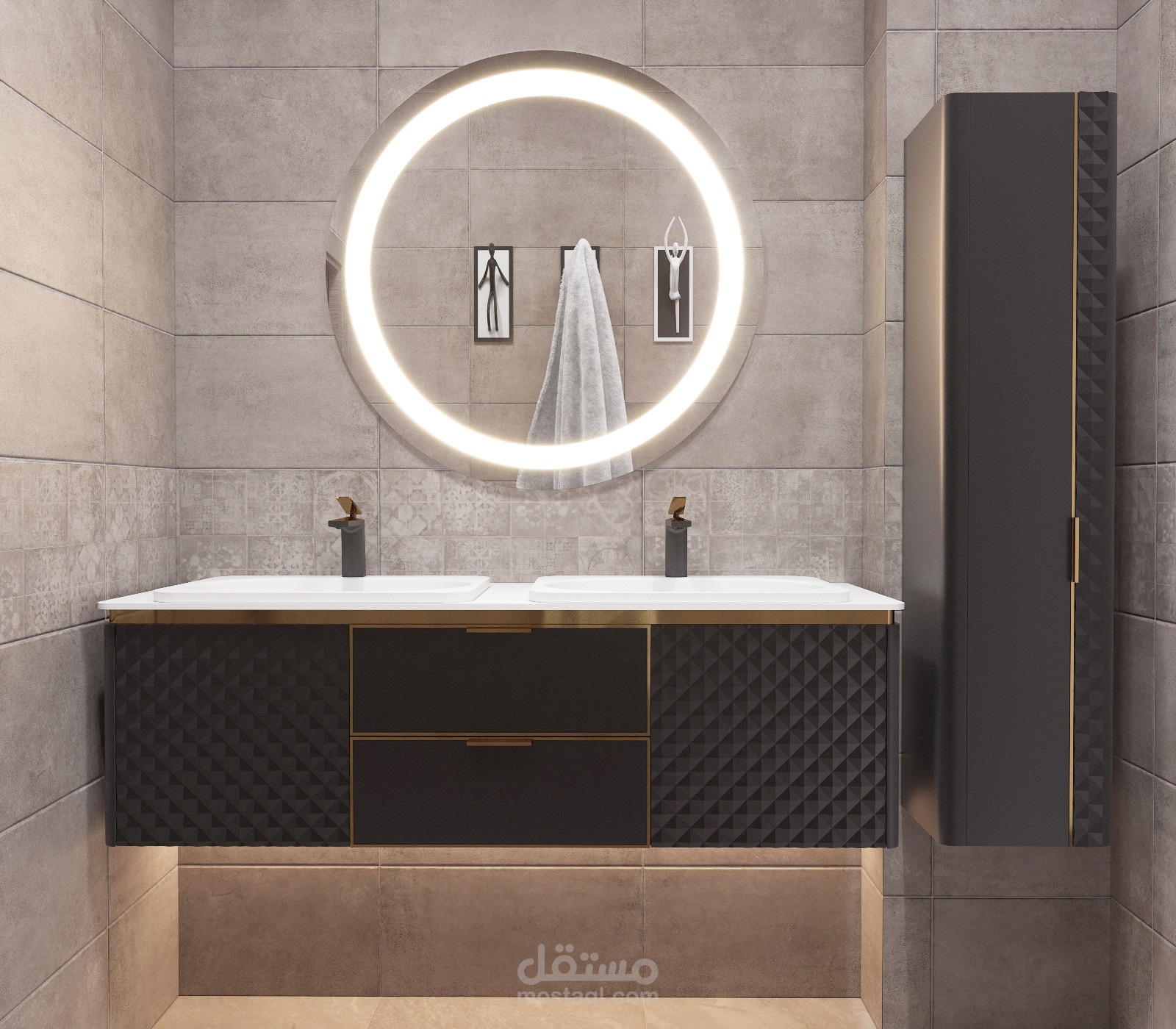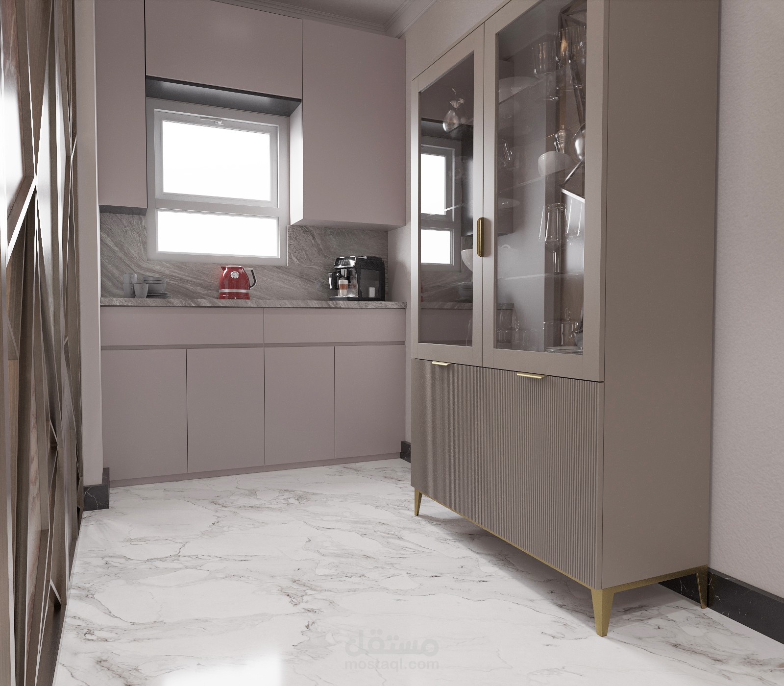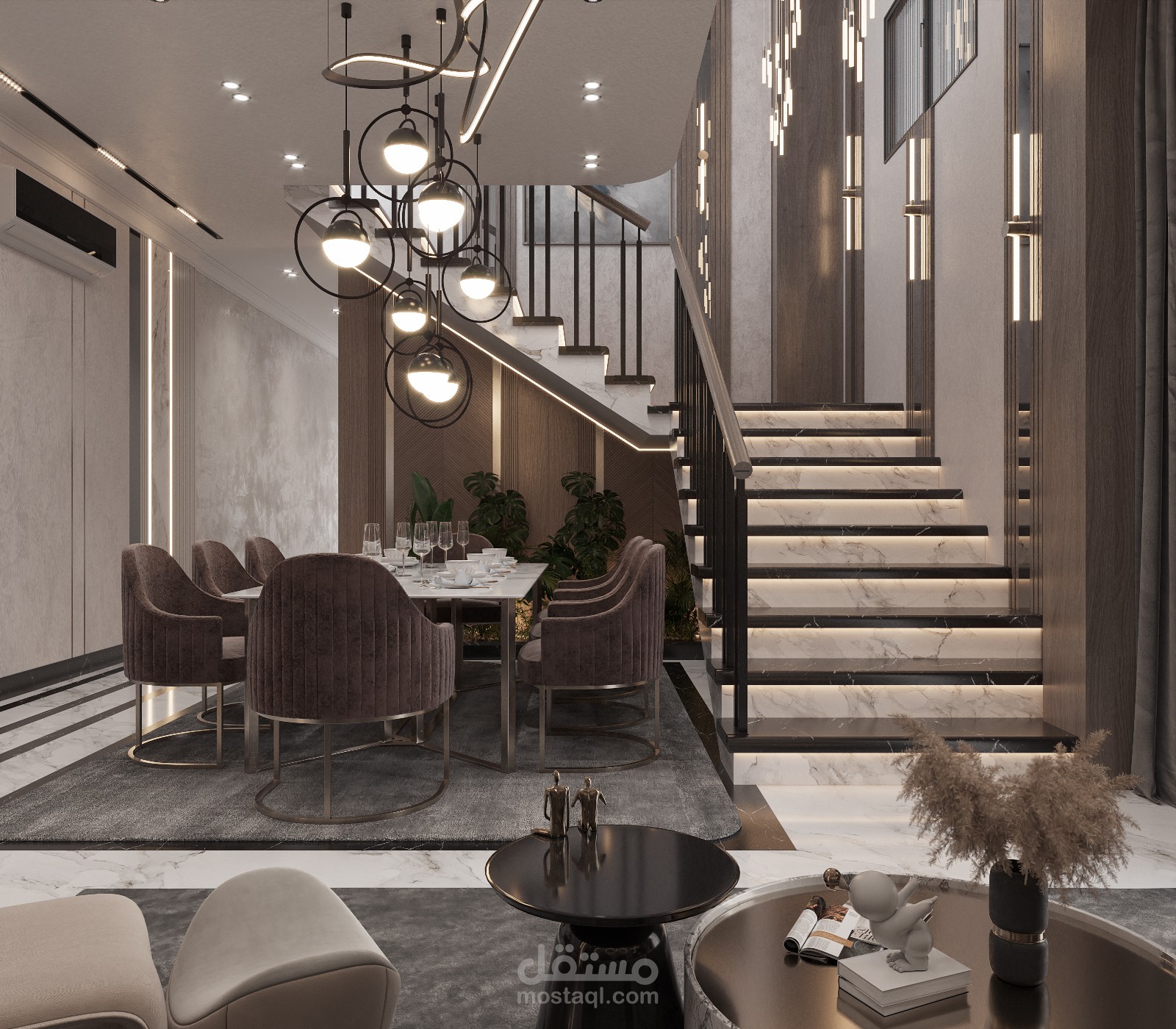 تحديد الخامات والتشطيبات لضمان تناسق الألوان والمواد مع باقي أجزاء الفيلا.