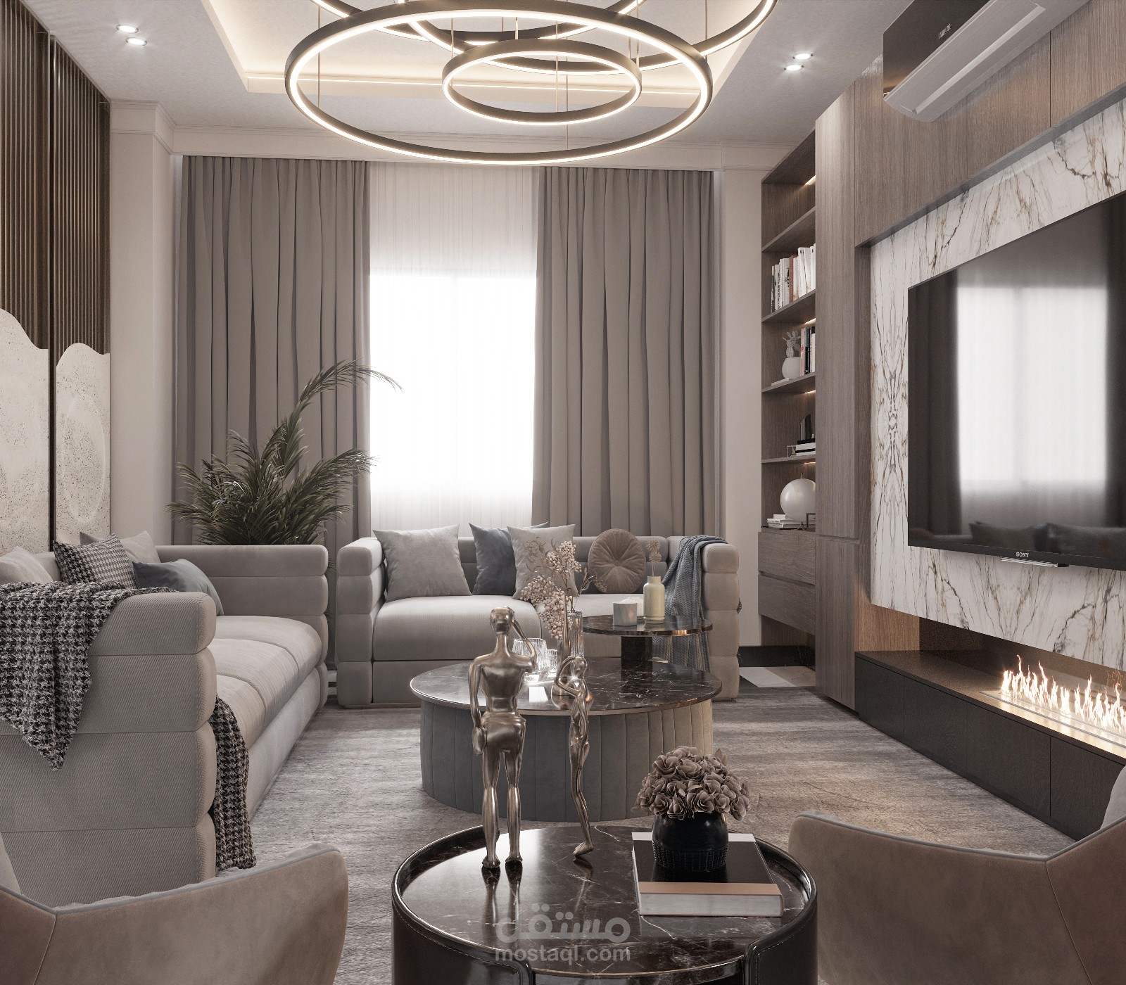 المشروع تم تقديمه بجودة عالية وبأسلوب منظم يسهل على الفريق التنفيذي فهم التفاصيل وتنفيذها بدقة، مع الحفاظ على الطابع الجمالي والوظيفي لمساحة Living.