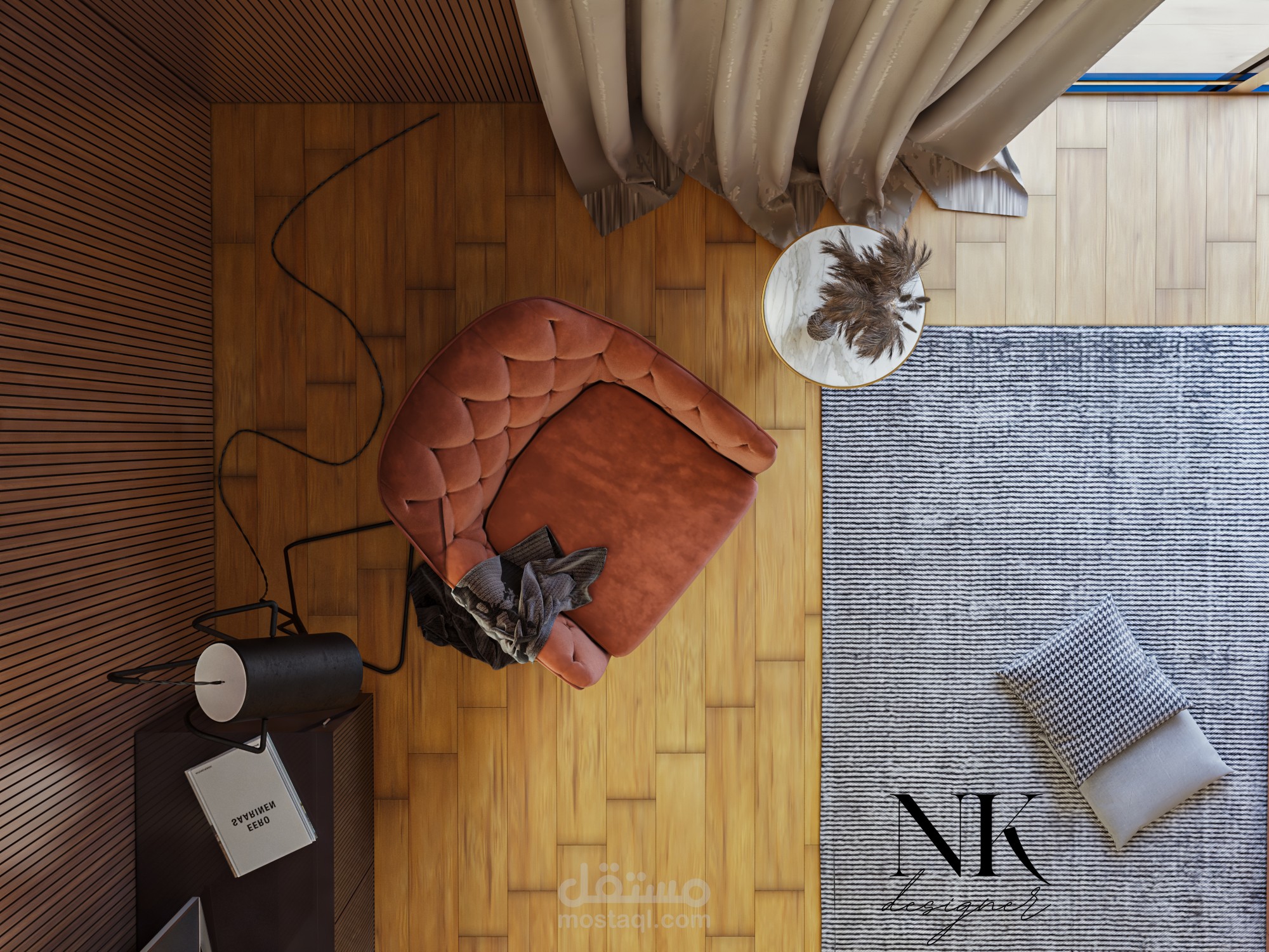 تجهيز Mood board وخطط 2D و3D لعرض الشكل النهائي للغرفة قبل التنفيذ.