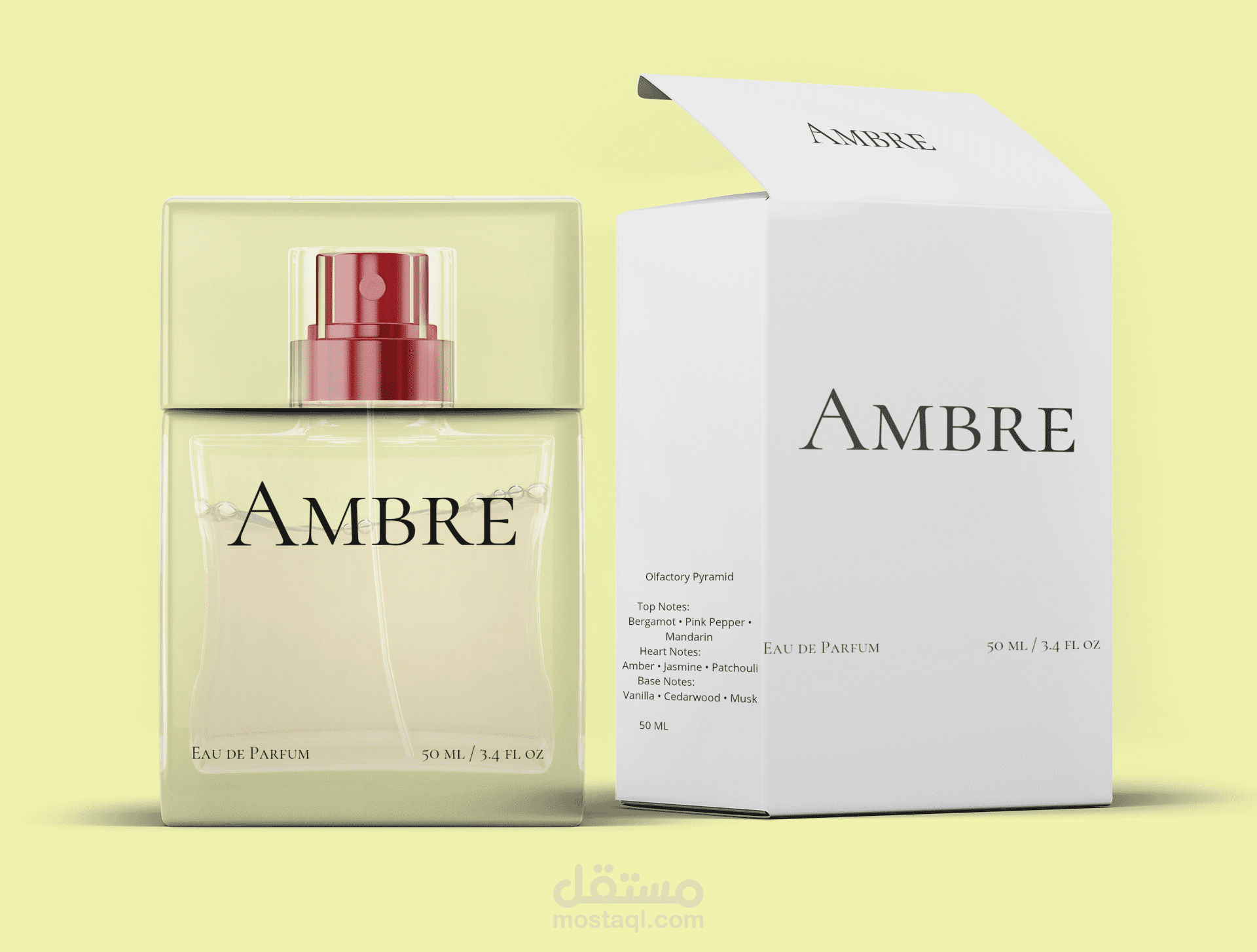 قمت بتصميم باكاجينغ احترافي لعطر AMBRE، مع التركيز على الأناقة والبساطة وإبراز هوية المنتج.