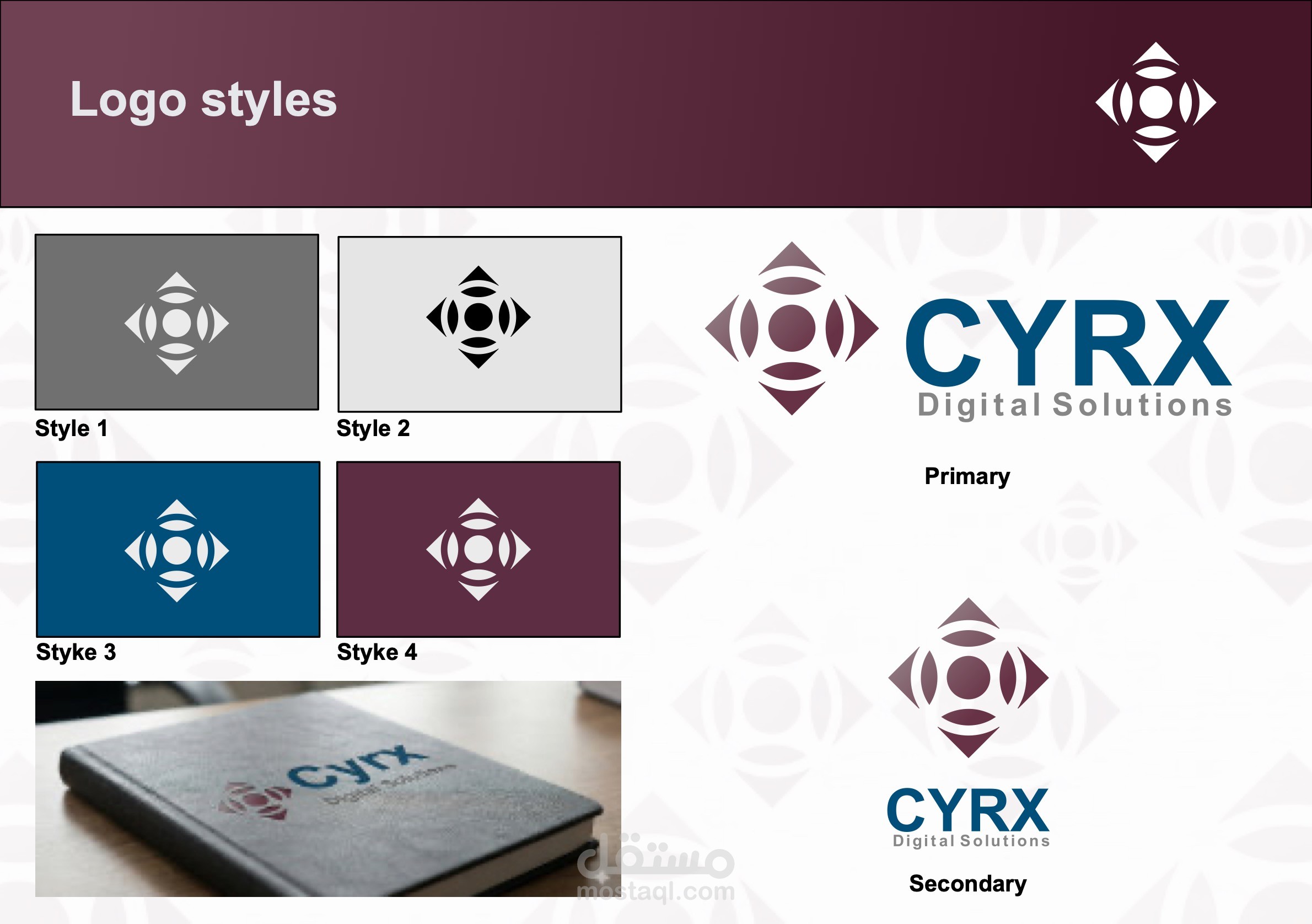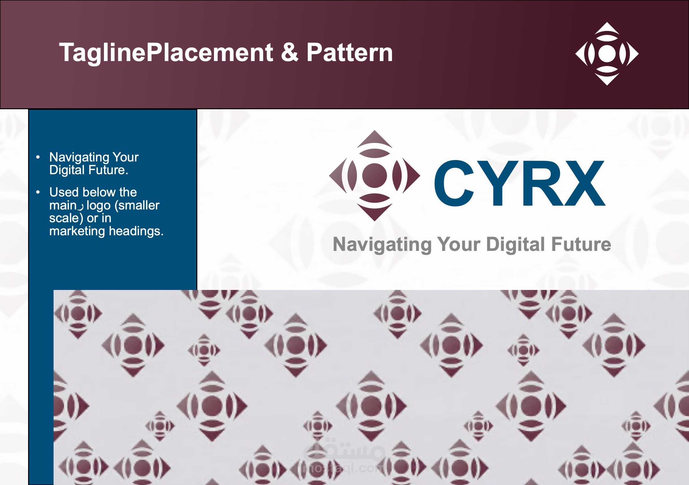 هذا النظام البصري يؤسس لعلامة تجارية متكاملة وقابلة للتطبيق بمرونة عالية بدءاً من الواجهات الرقمية للموقع الإلكتروني مروراً بالمطبوعات الرسمية ووصولاً إلى اللافتات الجدارية الفخمة في مقر الشركة مما يرسخ مكانة Cyrx كوجهة دقيقة وموثوقة لقيادة المستقبل الرقمي.