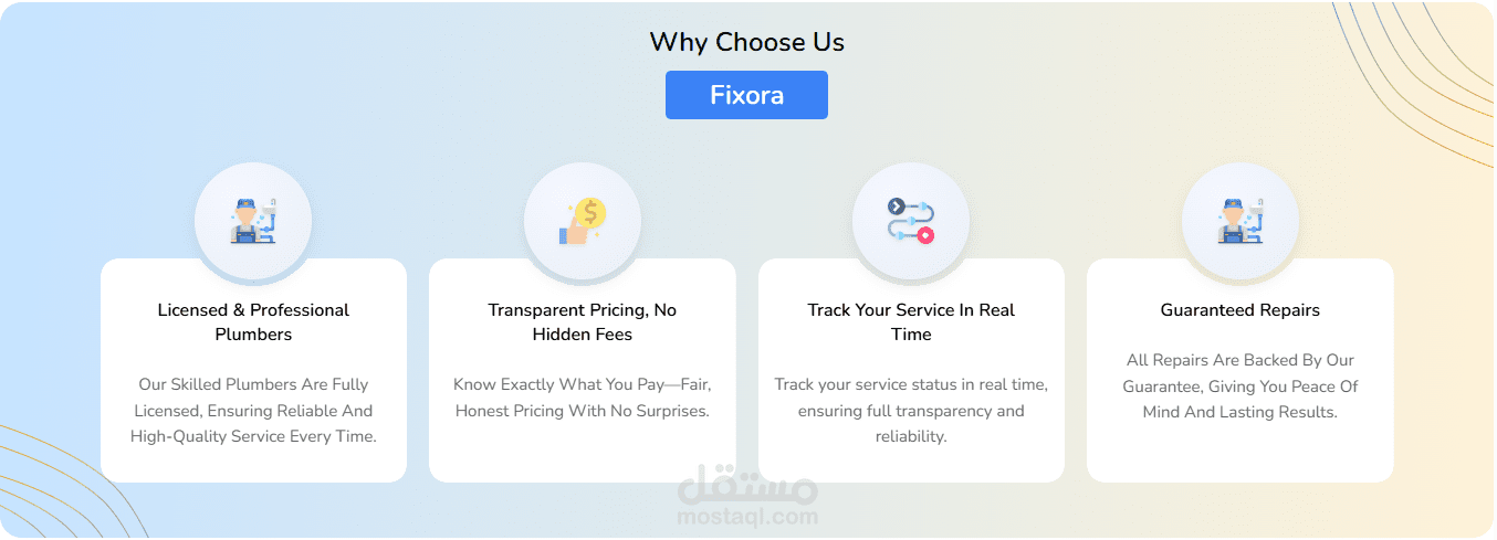 قمتُ بتطوير صفحة ويب باسم Fixora باستخدام HTML وCSS وJavaScript، مع إضافة تأثيرات حركية تجعل التصفح أكثر سلاسة وجاذبية. يتميّز الموقع بتصميم عصري ومتجاوب يعمل بكفاءة على مختلف الأجهزة، إضافةً إلى تنظيم العناصر بطريقة واضحة تُبرز هوية المشروع. هذا العمل يعكس اهتمامي بالتفاصيل وقدرتي على تحويل الأفكار إلى واجهات تفاعلية جذّابة.