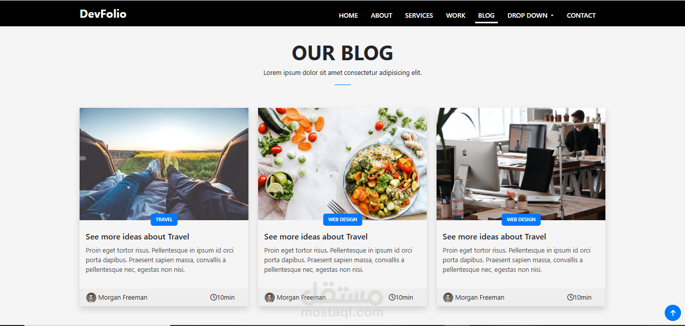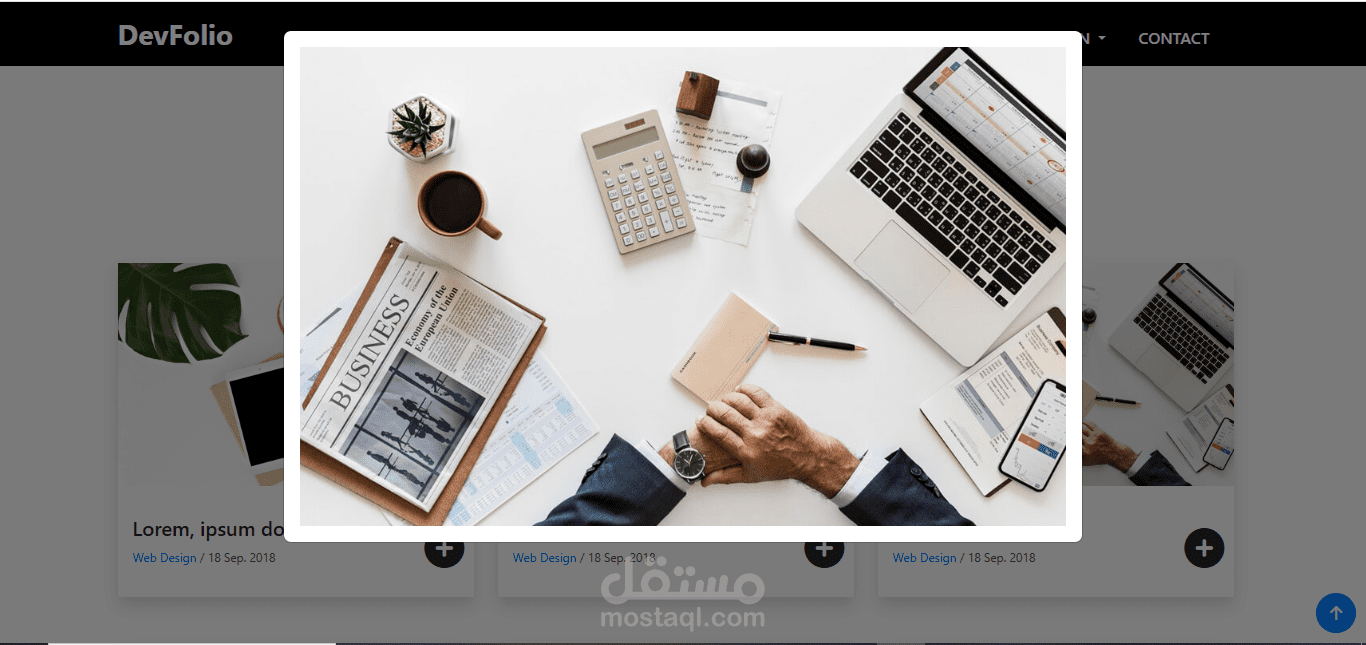 قمتُ بتطوير صفحة شخصية متكاملة باسم DevFolio باستخدام Bootstrap، وهي عبارة عن صفحة واحدة بتصميم عصري ومنظّم. تحتوي الصفحة على أقسام متنوعة مثل About Me، سلايدر Carousel، قسم Statistics، بالإضافة إلى Contact Us والمزيد من العناصر التفاعلية.