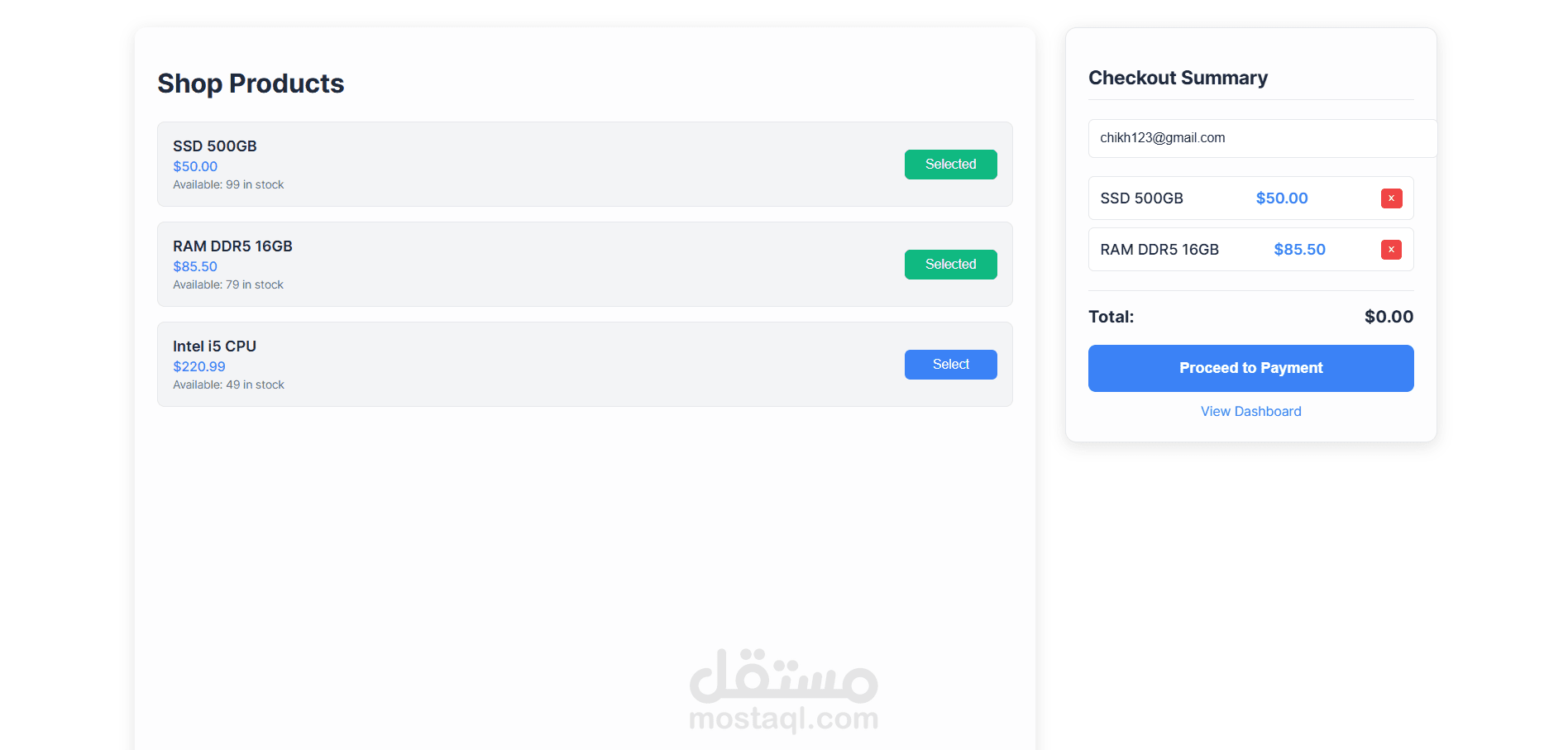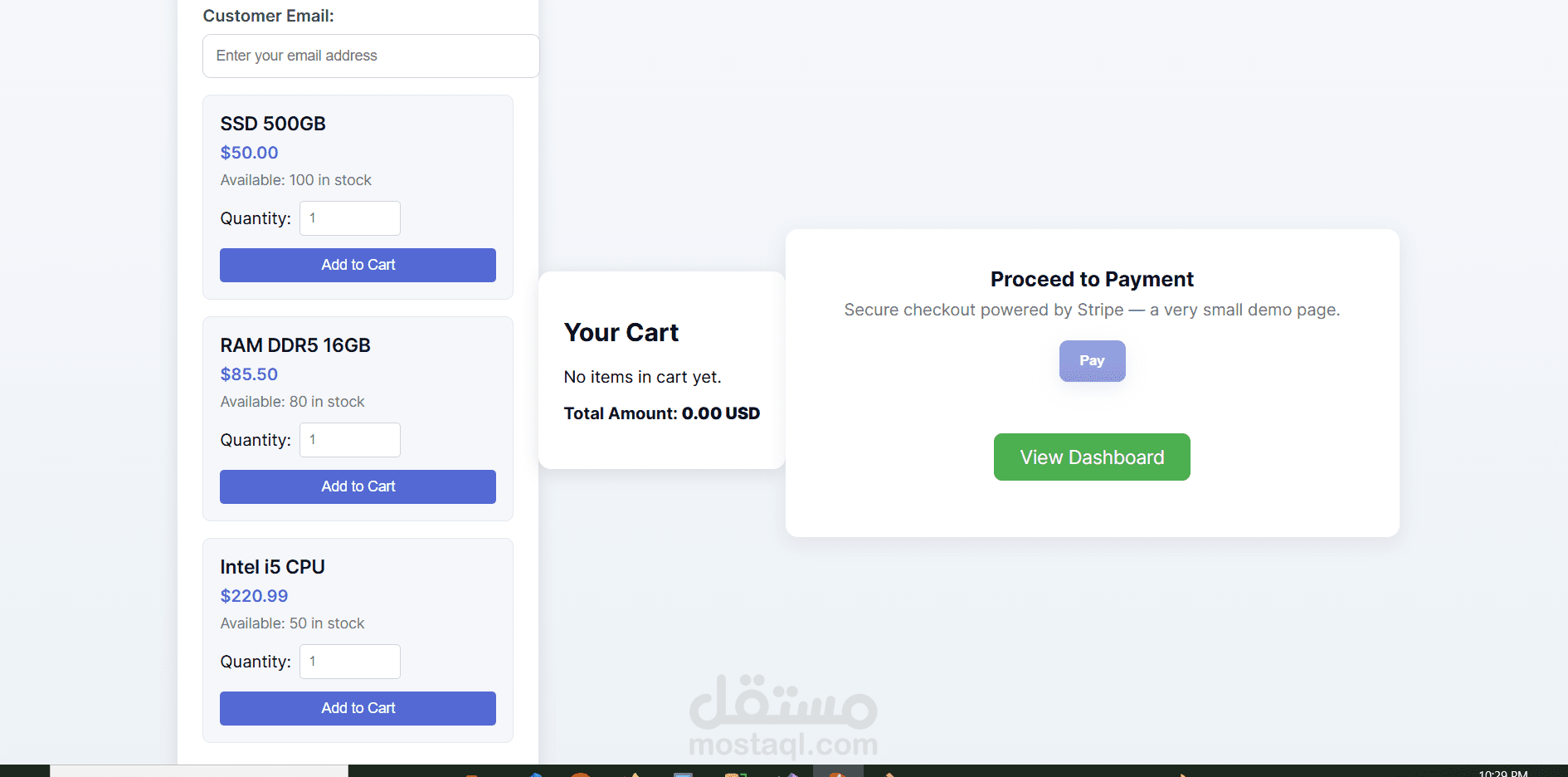 مشروع API بسيط وقوي مخصص لدمج الدفع الإلكتروني عبر Stripe Checkout، مع إدارة المنتجات والطلبات، واستخدام PostgreSQL لتخزين البيانات. يحتوي أيضاً على صفحة Checkout جاهزة للاختبار مبنية بـ HTML/CSS/JS.