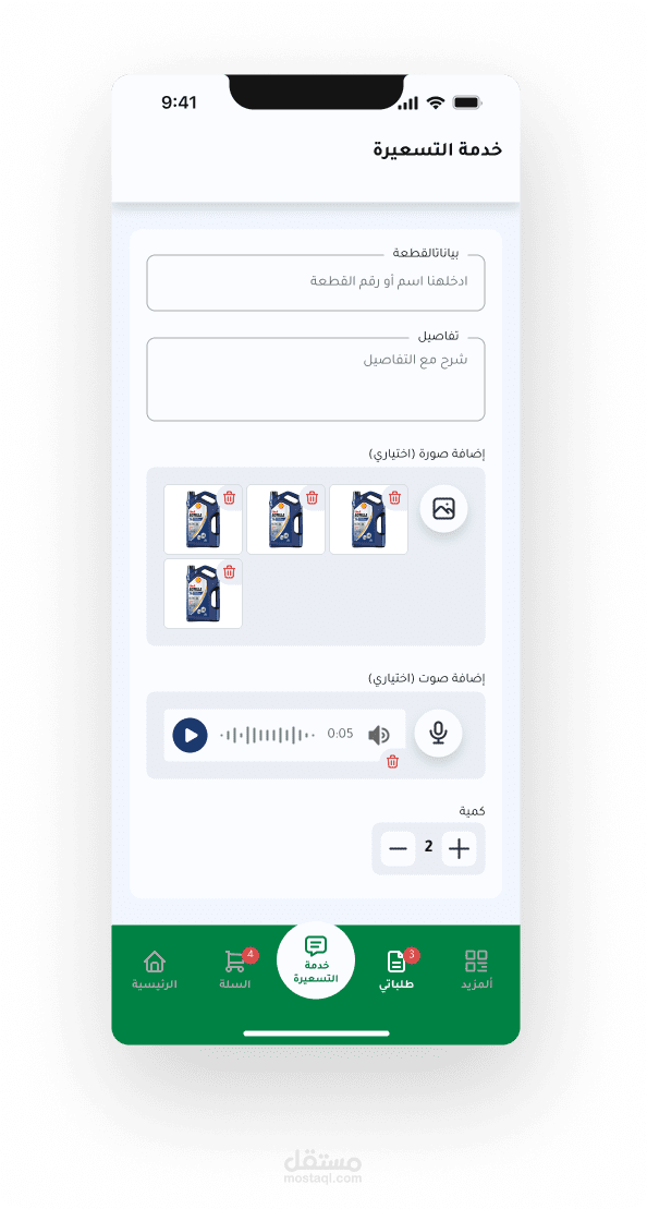 • ميزة التحقق من توافق قطع الغيار باستخدام رقم الهيكل (VIN-based part compatibility) للتأكد من أن القطع المناسبة متوافقة مع سيارة المستخدم، مما يقلل الأخطاء ويزيد من موثوقية الطلبات.