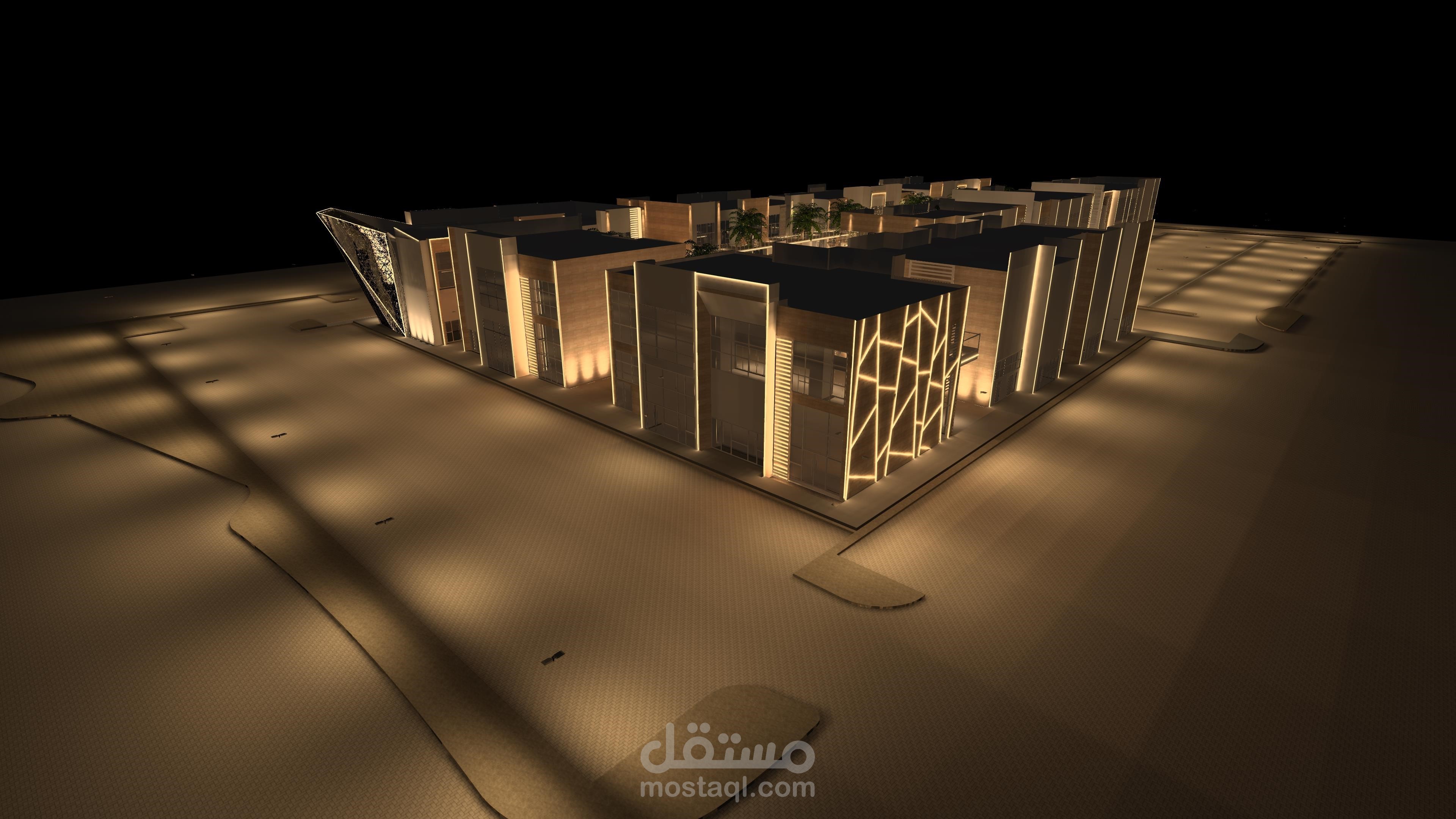 قمت بإعداد وتصميم منظومة الإضاءة الشاملة لمجمع جامعي حديث، مع مراعاة المعايير الأكاديمية والوظيفية لكل مساحة. ركزت على توفير إضاءة مريحة تدعم التركيز داخل الفصول وقاعات الدراسة، وإضاءة معمارية تبرز المباني والممرات، إضافة إلى حلول آمنة وعملية للمناطق الخارجية. الهدف كان خلق بيئة تعليمية متوازنة، فعّالة بصريًا، وذات هوية جمالية واضحة.