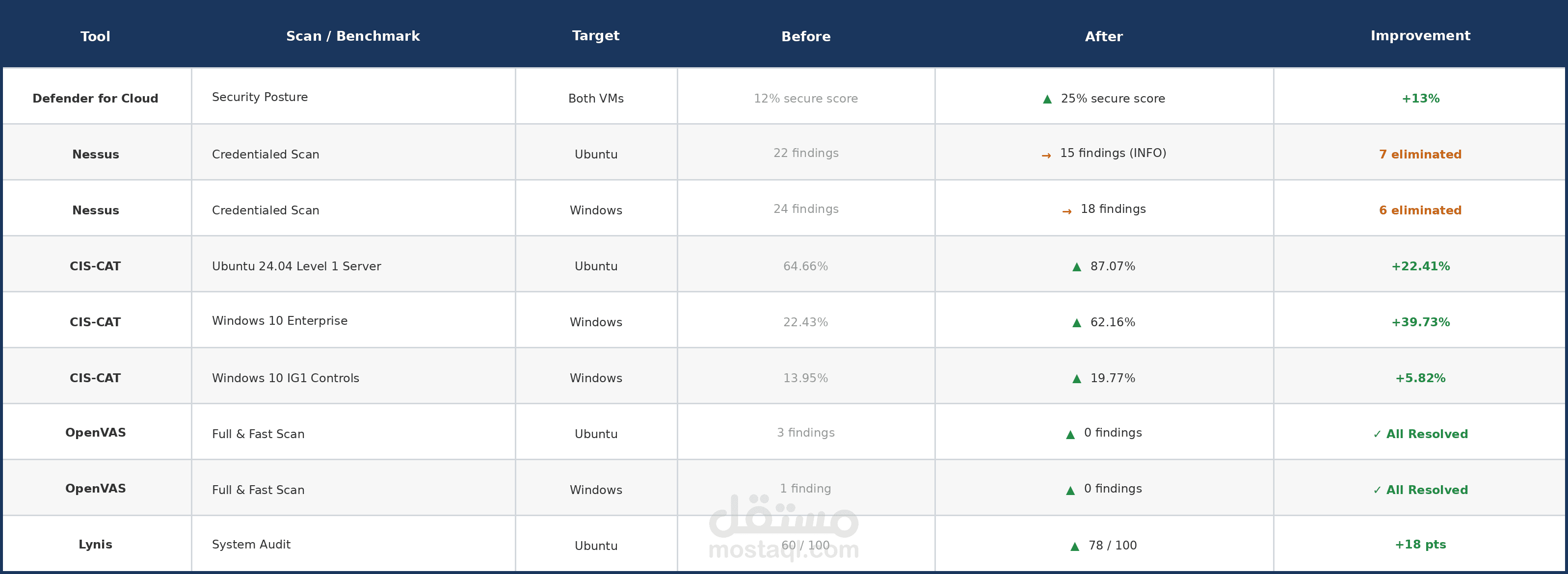 This lab covers the full vulnerability management lifecycle on two freshly deployed Azure VMs. The Ubuntu machine doubles as both a target and a scanner host. The Windows machine is a standalone target with no domain infrastructure. Both were assessed from an external Kali Linux host using credentialed scans, then hardened based on the findings, then re-scanned to confirm improvement.