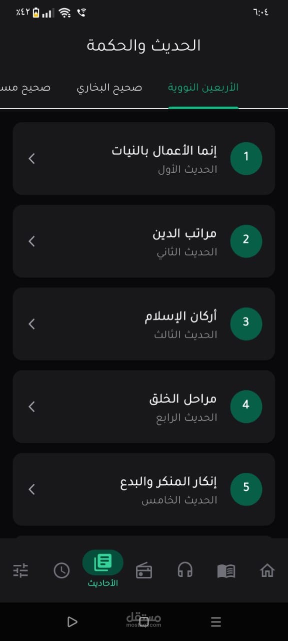 احاديث ومواعظ : لائمه كبار زى البخارى و مسلم و الاربعون النوويه للامام يحيي بن شرف النووى و مواعظ الامام الغزالى واحاديث قدسيه واحاديث للنبى محمدﷺ