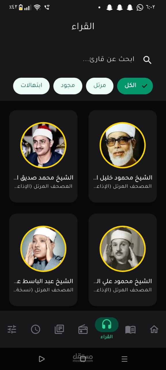 كنوز الإذاعة المصرية: المصاحف المرتلة كاملة (النسخ الأصلية) للمنشاوي، الحصري، عبد الباسط، ومصطفى إسماعيل، وغيرهم من كبار الشيوخ زي أحمد محمد عامر والشحات محمد أنور واحمد نعينع