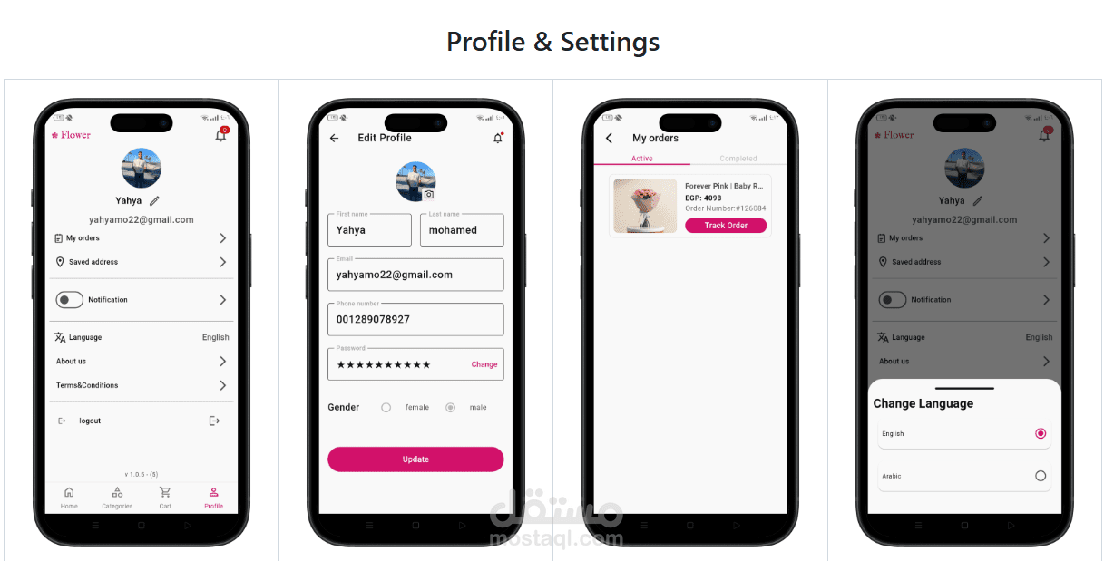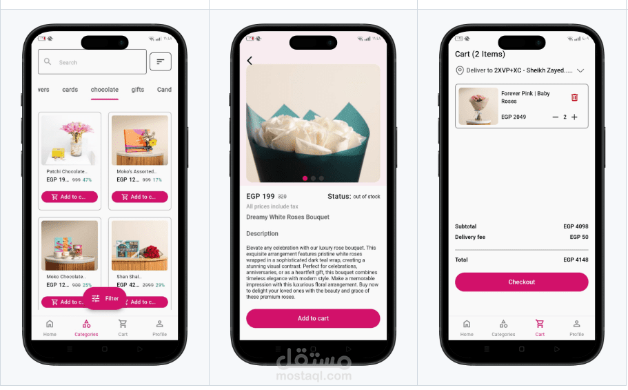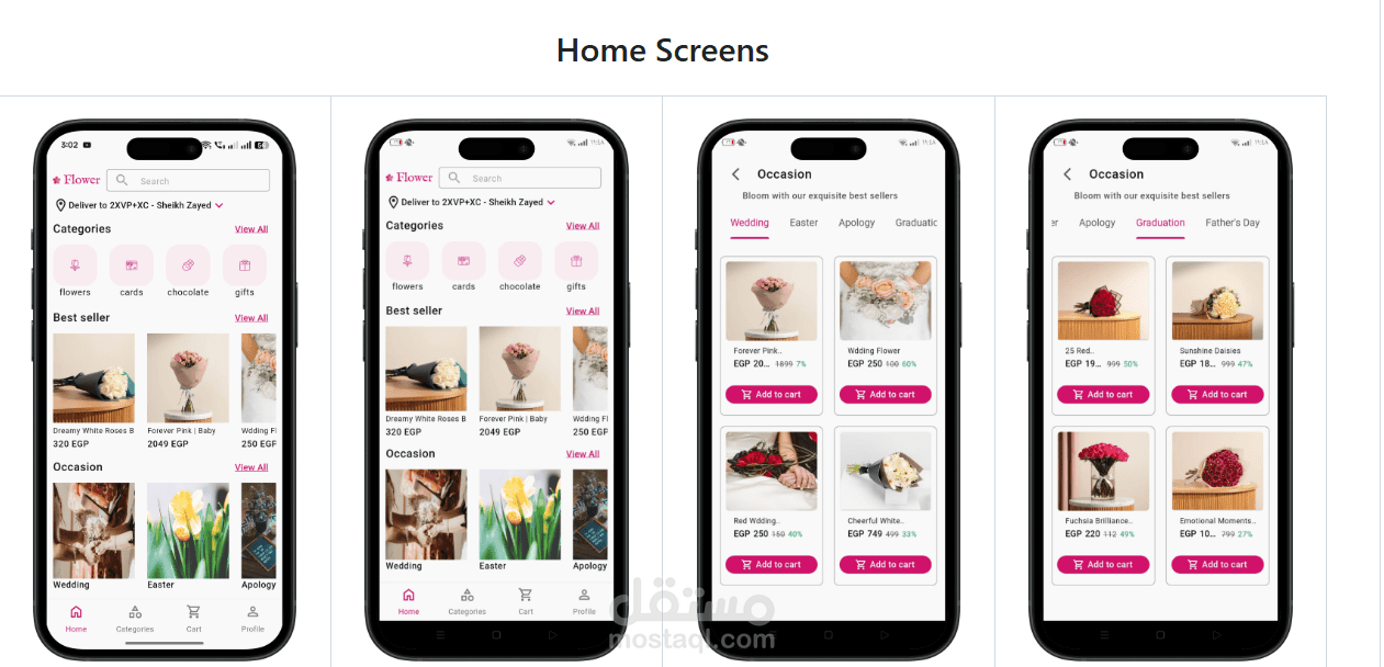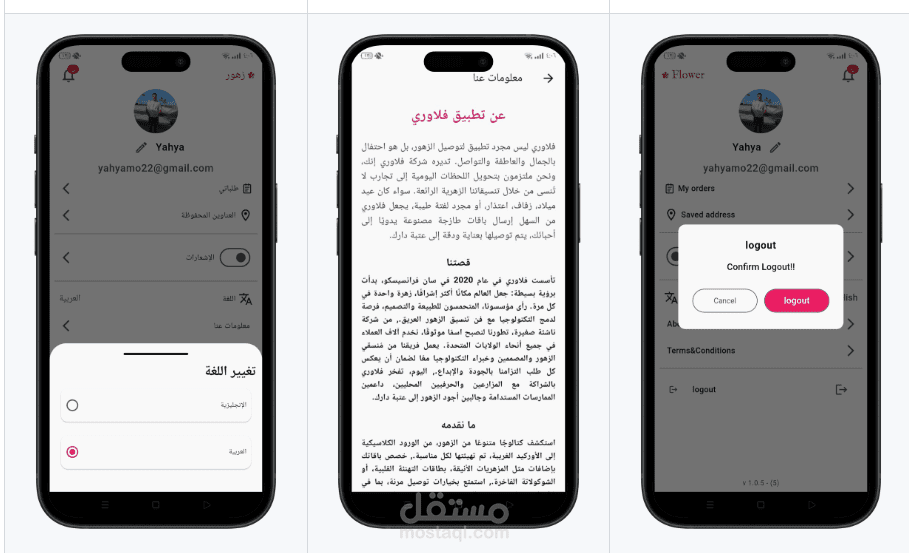 Flowery هو تطبيق متخصص في طلب الورود والهدايا بطريقة سهلة ومنظمة. يوفّر للمستخدم كتالوج كامل للزهور، فلاتر للبحث، تحديد وقت التوصيل، تتبُّع الطلب، والدفع عبر طرق مختلفة.