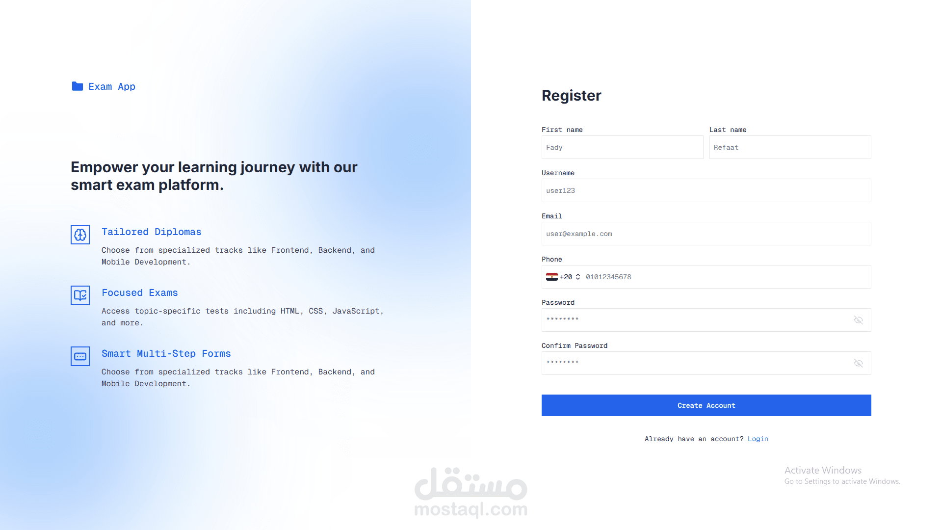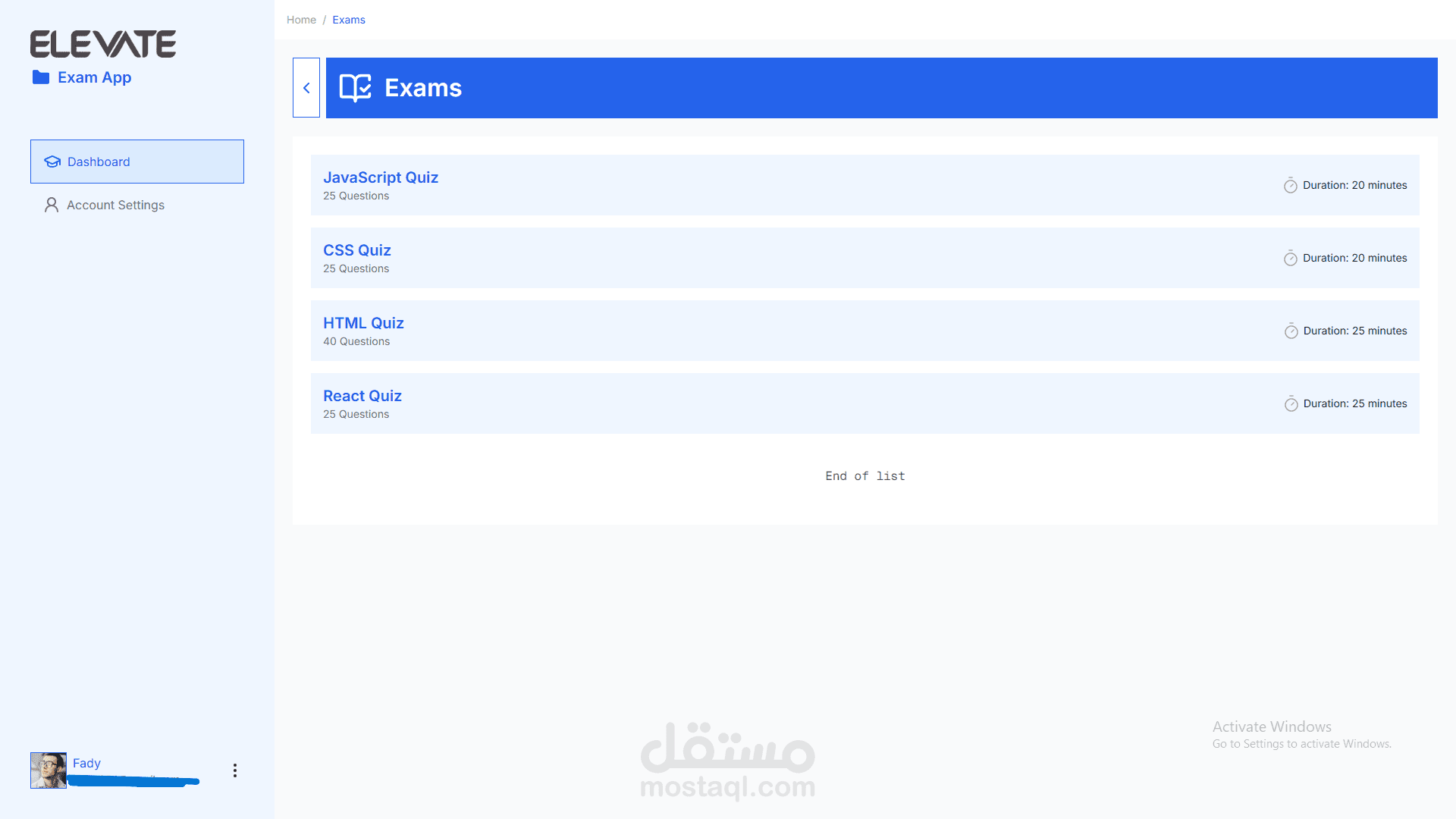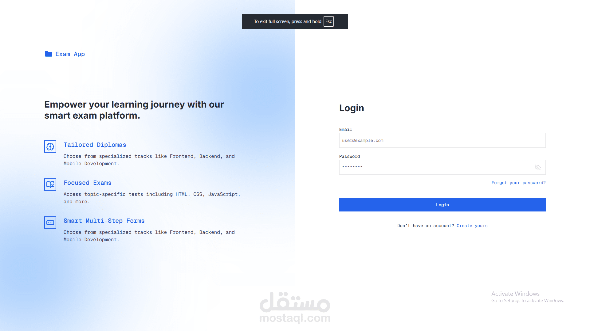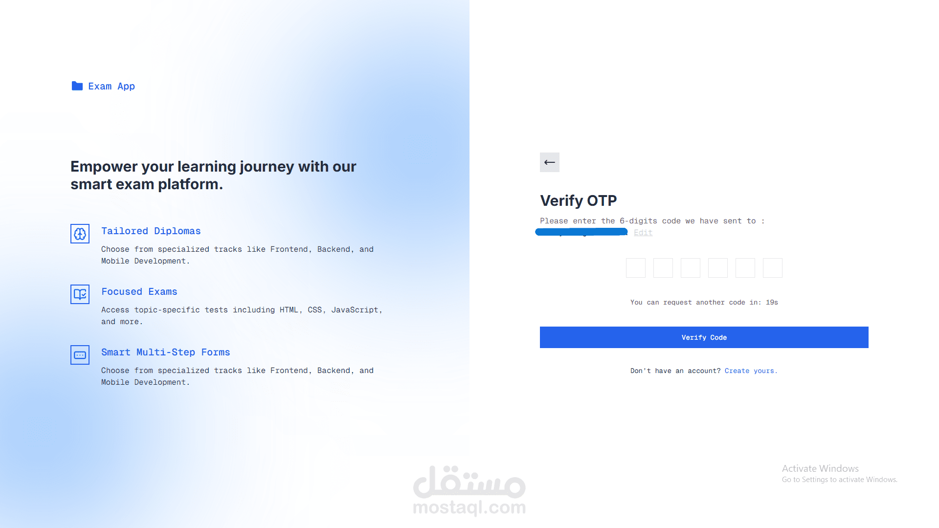 Exams App built with a modern user interface and a smooth user experience, designed to help users take exams easily and efficiently.