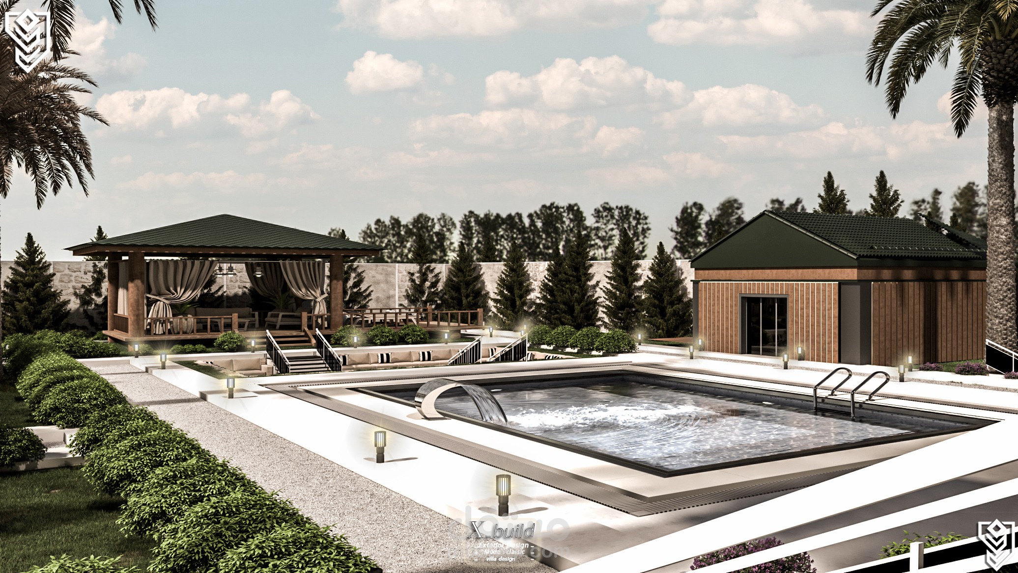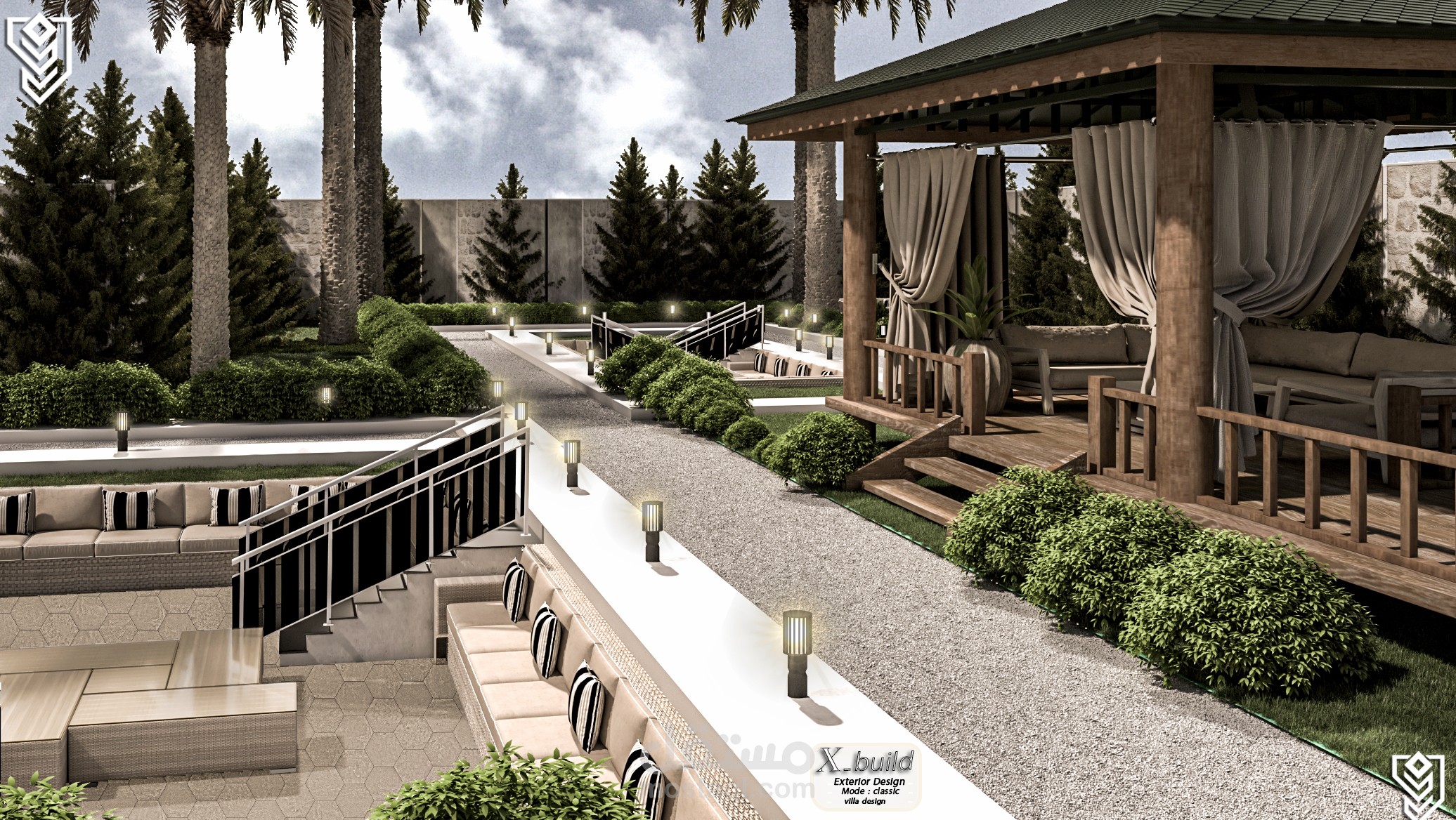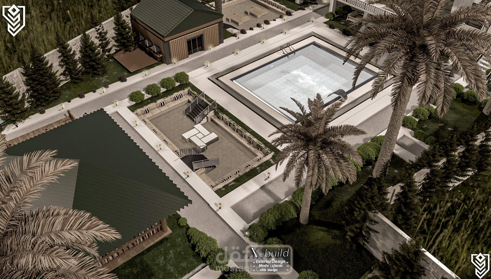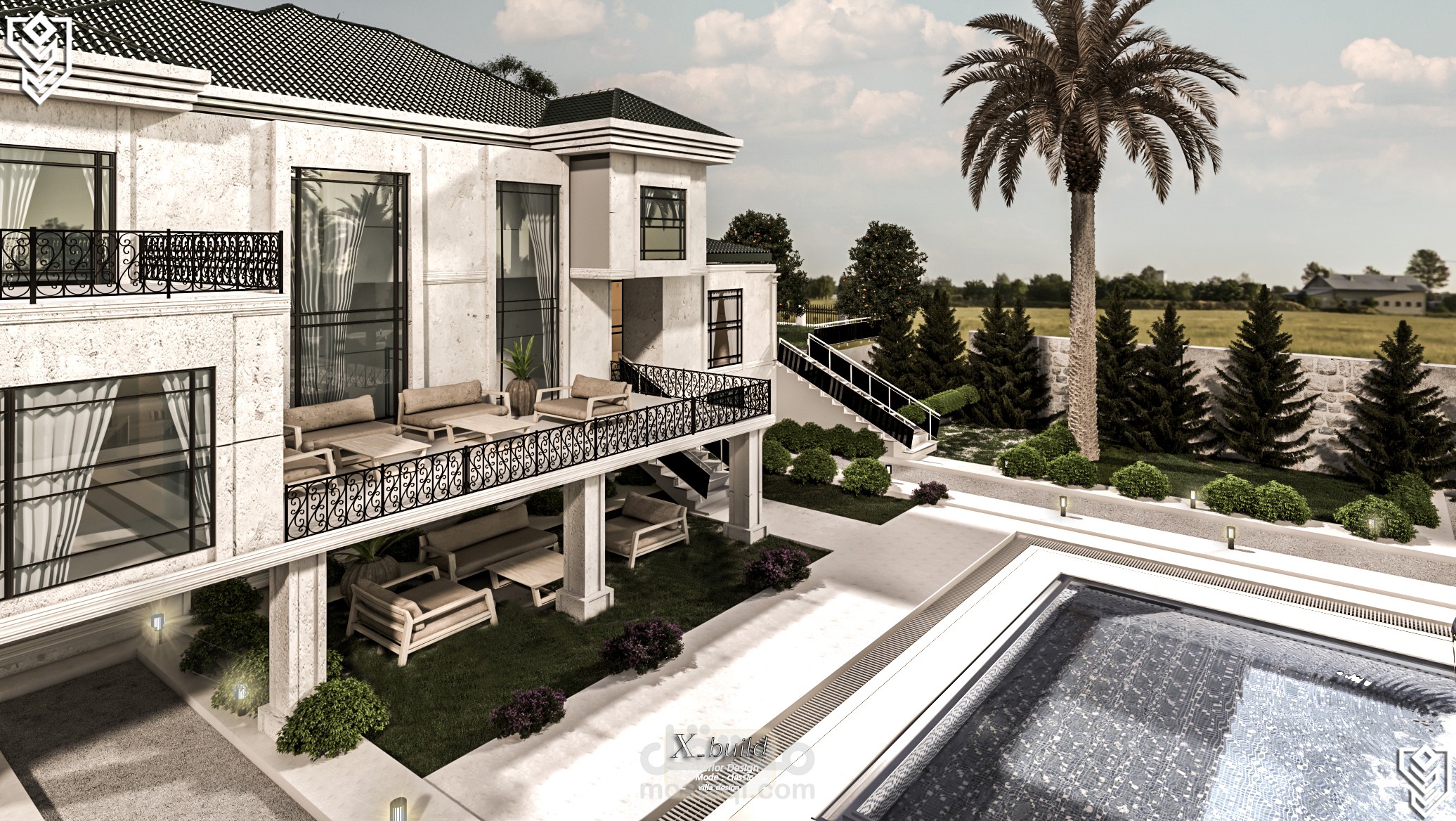 بصفتي المصمم الرئيسي، وضعتُ رؤية متكاملة لفيلا كلاسيكية فاخرة على أرض منحدرة بلطف، فابتكرتُ شرفات تُعزز جمال التصميم والمناظر الطبيعية على حد سواء. يتميز التصميم الخارجي بأعمال حجرية راقية، وأعمدة كلاسيكية، وفتحات واسعة تسمح بدخول الضوء الطبيعي. أما التصميم الداخلي، فيجمع بين المساحات الرحبة والتشطيبات الفاخرة ليعكس ذوقًا عصريًا أنيقًا. وتُضفي المناظر الطبيعية لمسة جمالية متكاملة من خلال حدائق متدرجة، وممرات انسيابية، وإضاءة تُبرز روعة التصميم المعماري ليلًا.
