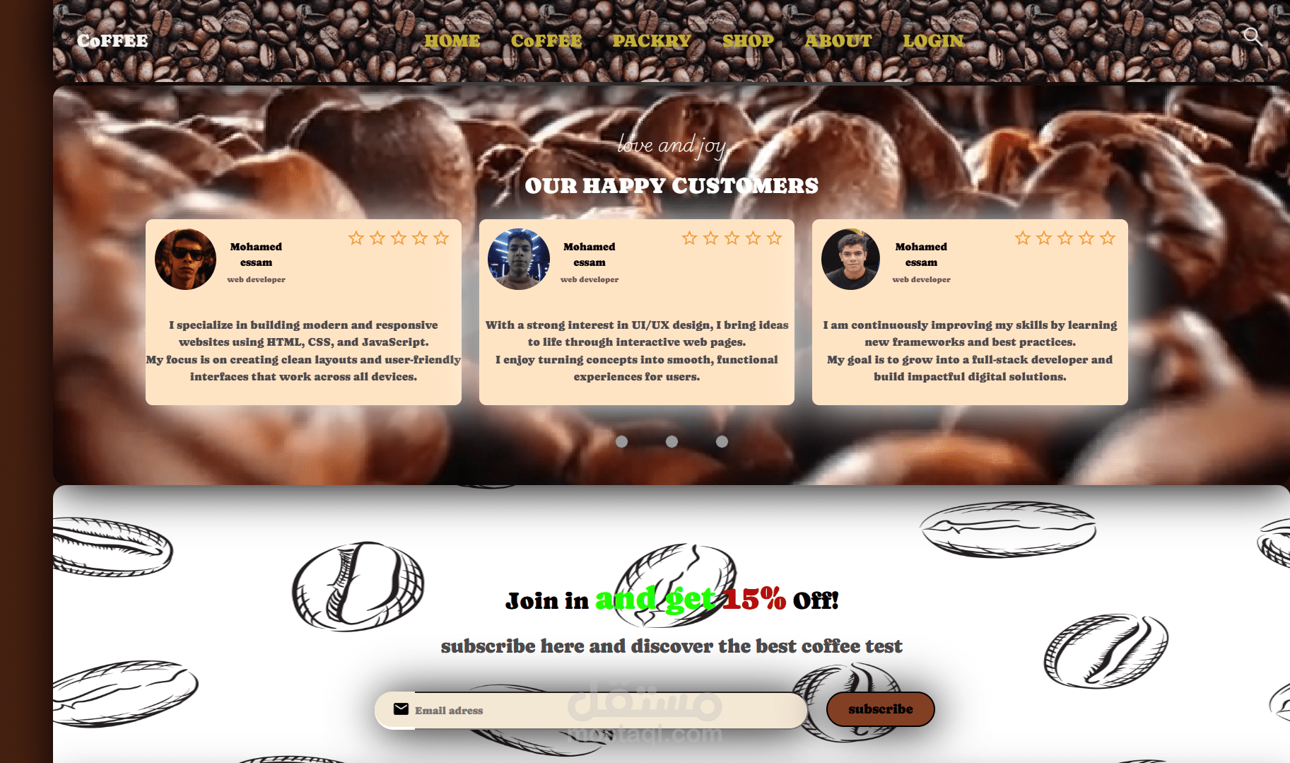 يُظهر هذا المشروع اهتمامًا بالتفاصيل، تجربة مستخدم مريحة، وانسجامًا بصريًا يعكس جودة المنتج وروح القهوة.