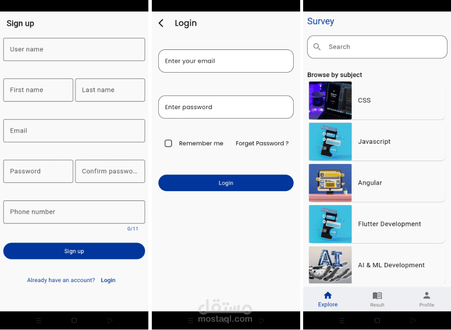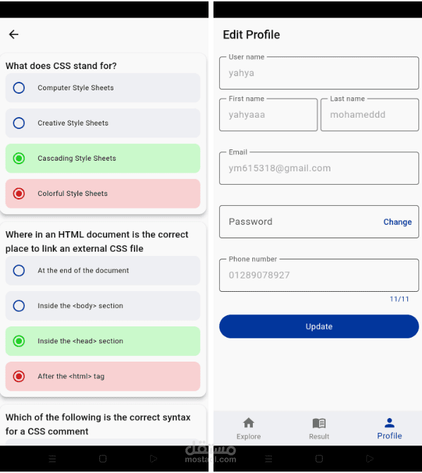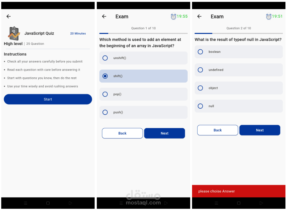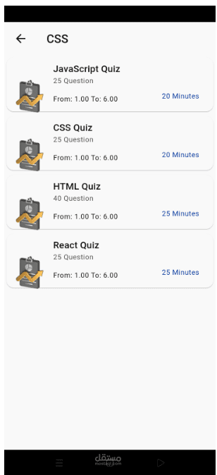 في Exam App اشتغلنا على تطبيق امتحانات موبايل بيعتمد على بيانات ثابتة JSON وهدفه تبسيط عملية عرض وحل الامتحانات.