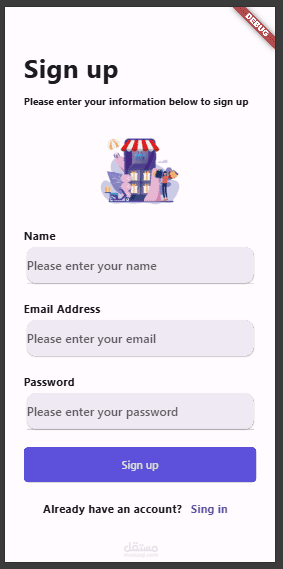 تطبيق روابط تنقل واضحة بين شاشتي التسجيل والدخول.