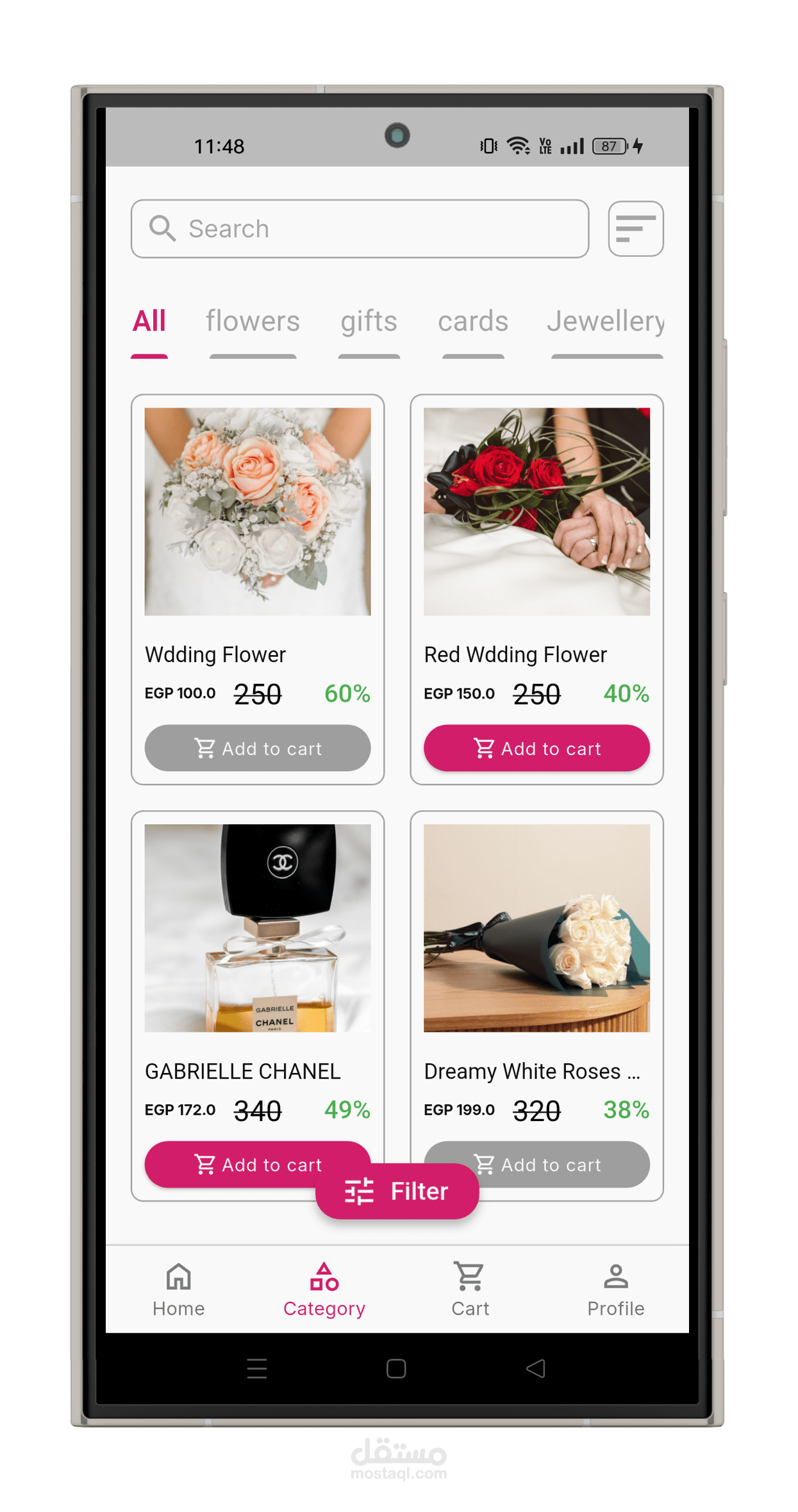 It allows users to browse products by categories and occasions, manage cart and orders, and complete checkout smoothly, with full Arabic and English language support.