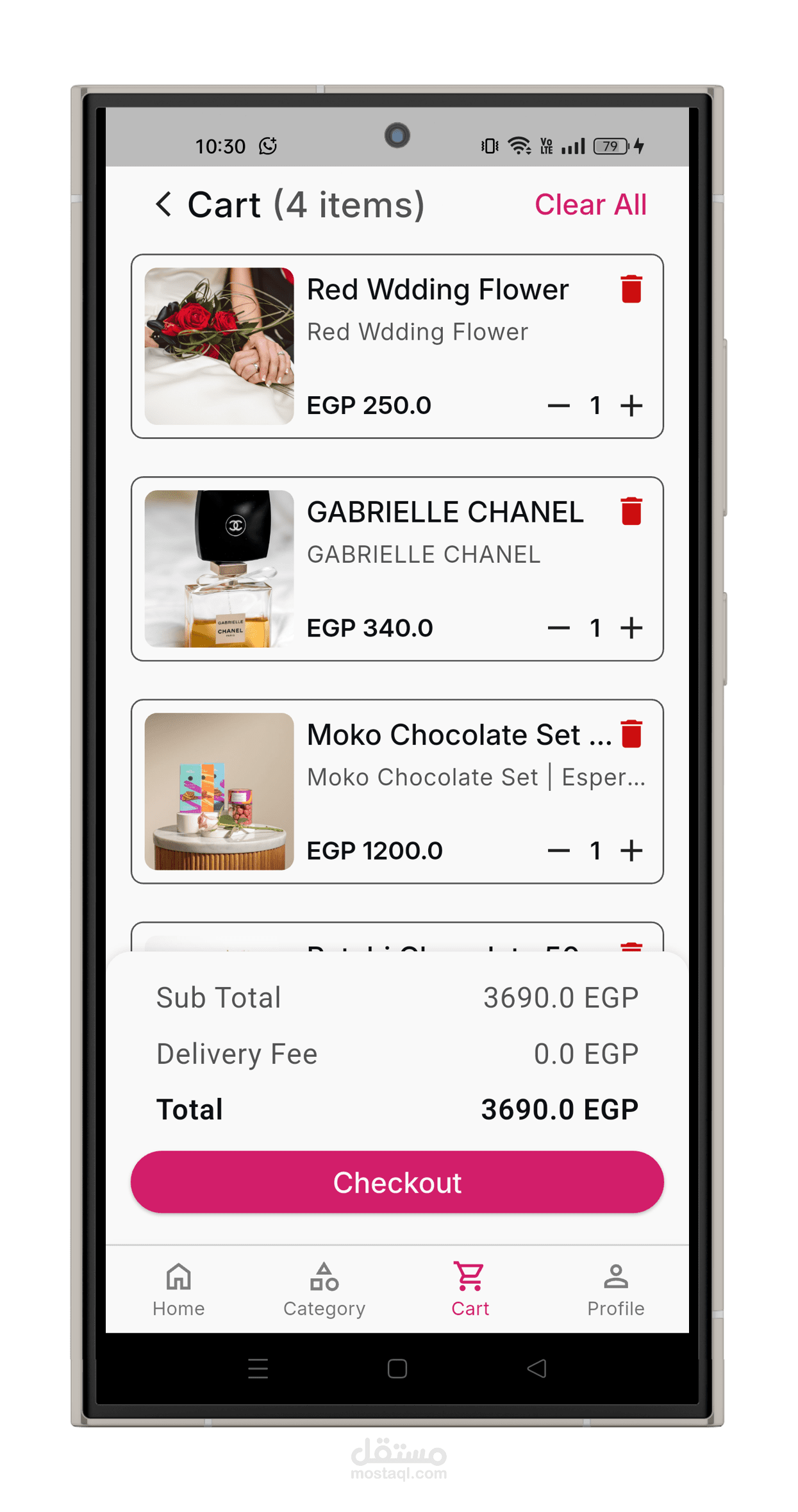 يوفّر التطبيق تجربة تسوق متكاملة تشمل إدارة السلة، حفظ المنتجات المفضلة، وتتبع الطلبات لحظة بلحظة، مع دعم كامل للغتين العربية والإنجليزية وتصميم جذاب يركّز على راحة المستخدم وسلاسة التفاعل.