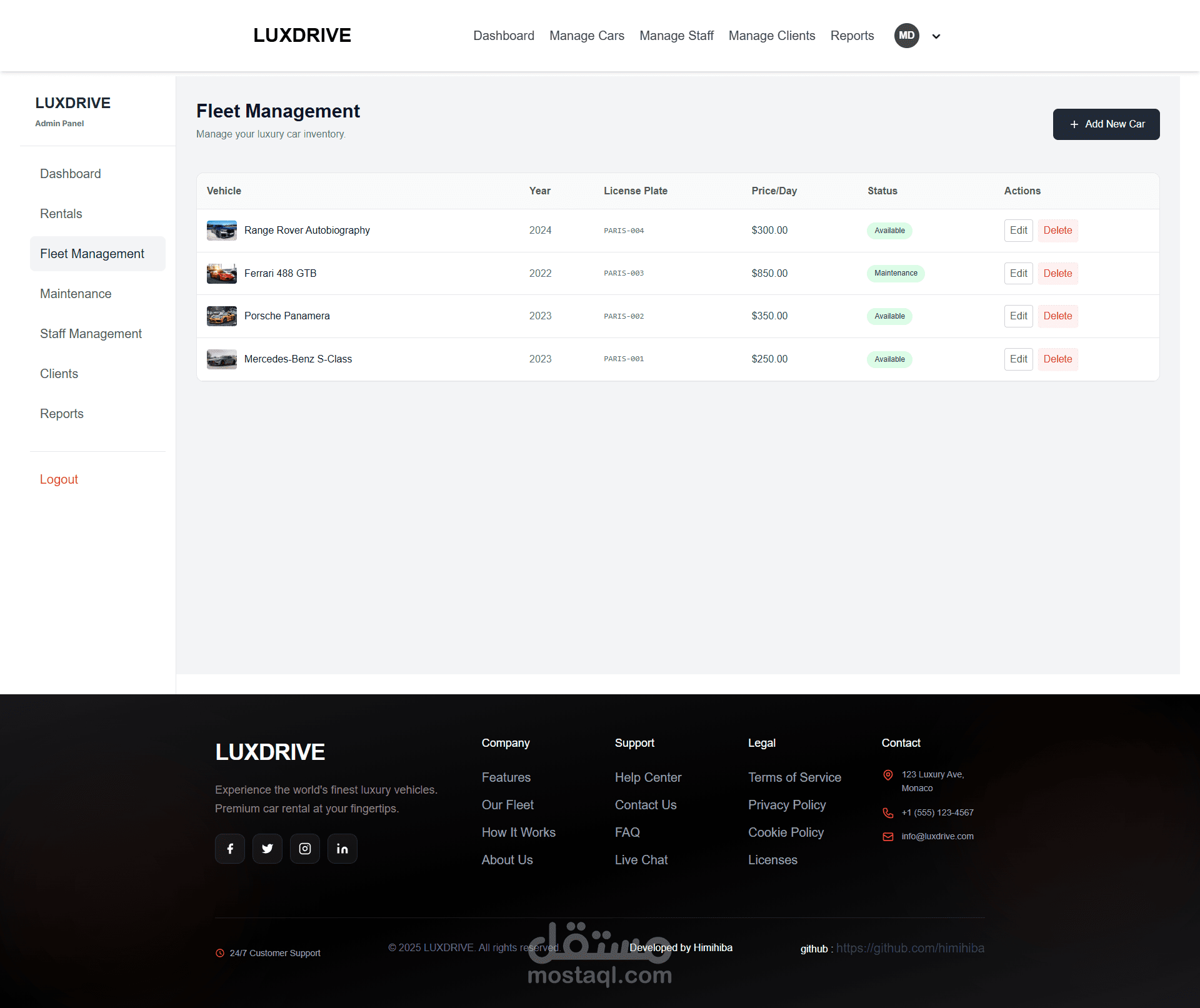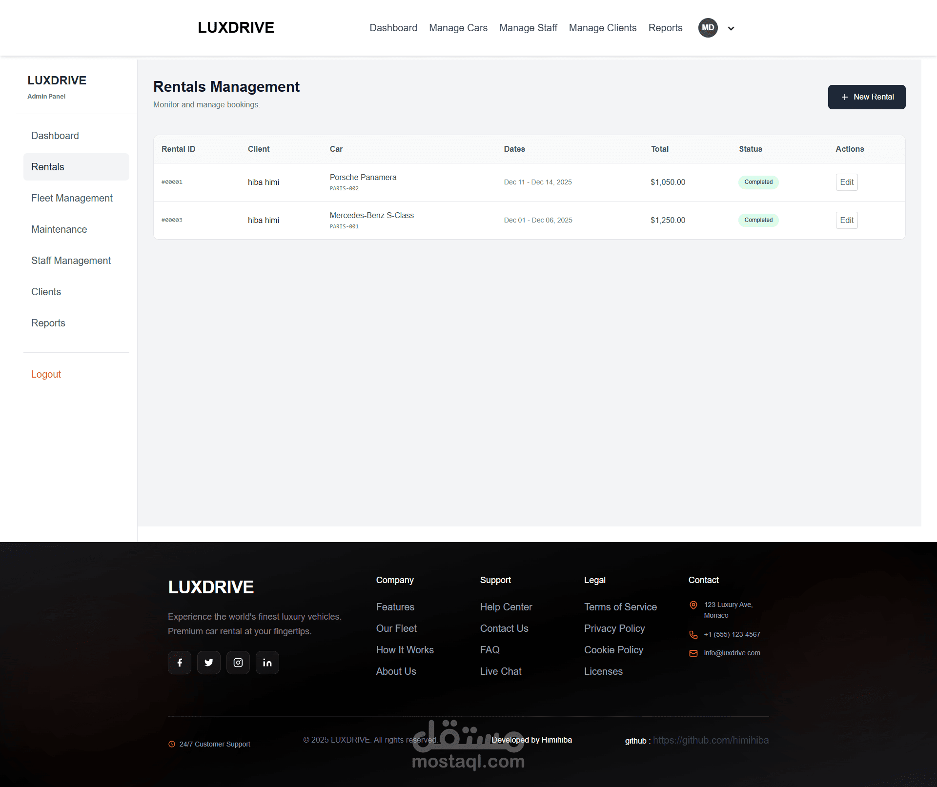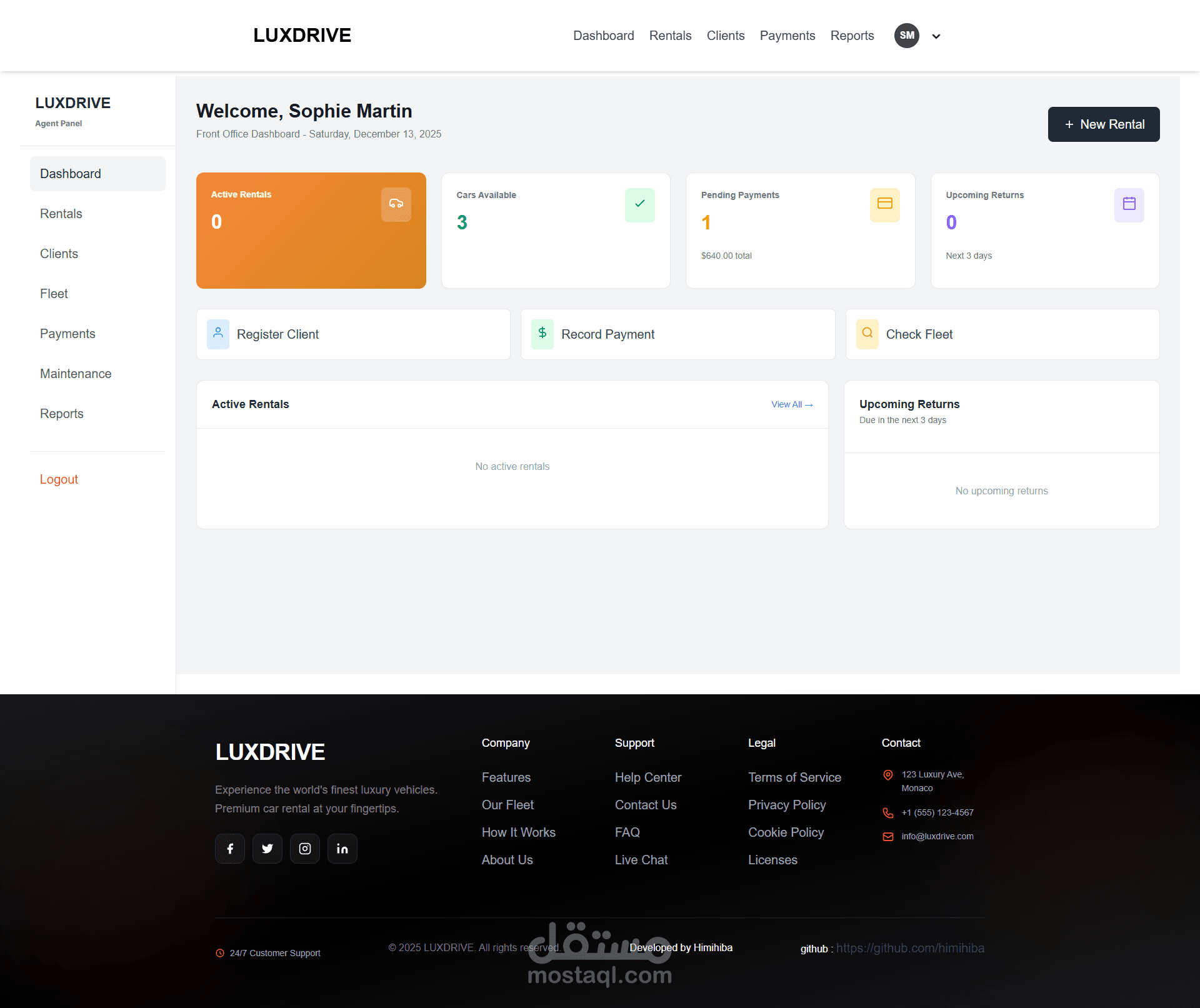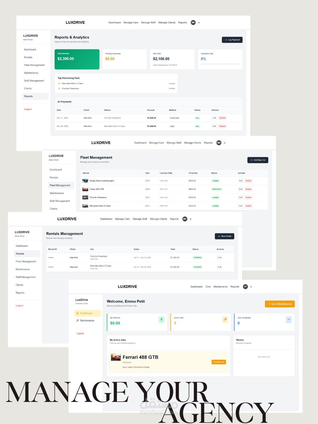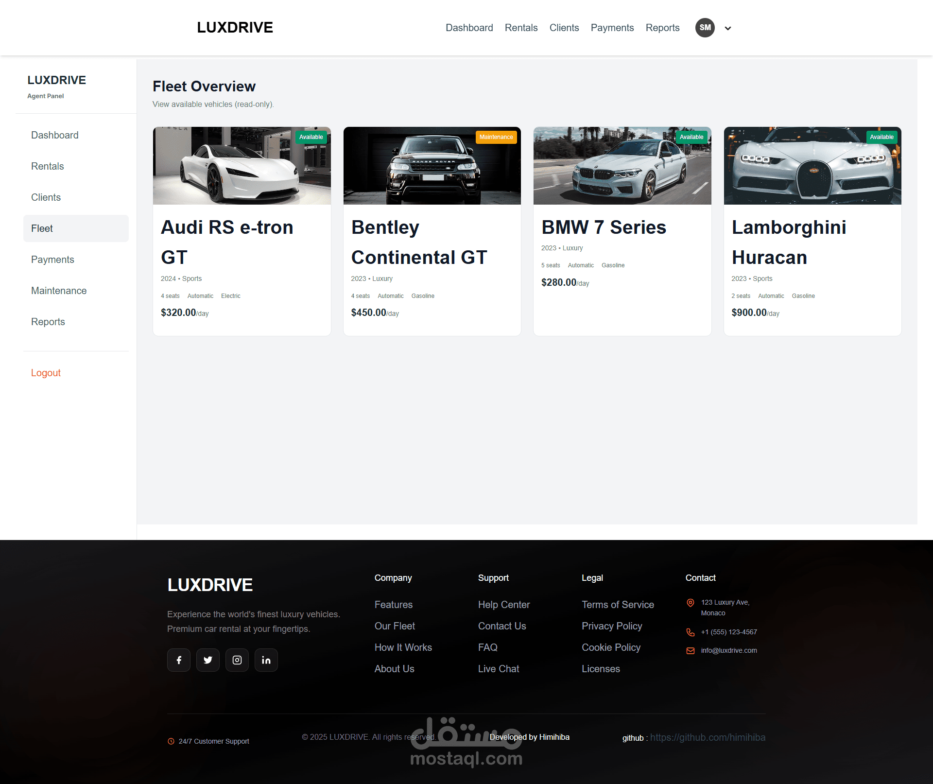 A full-featured web system for luxury car rental agencies, providing all the tools needed to manage operations efficiently.