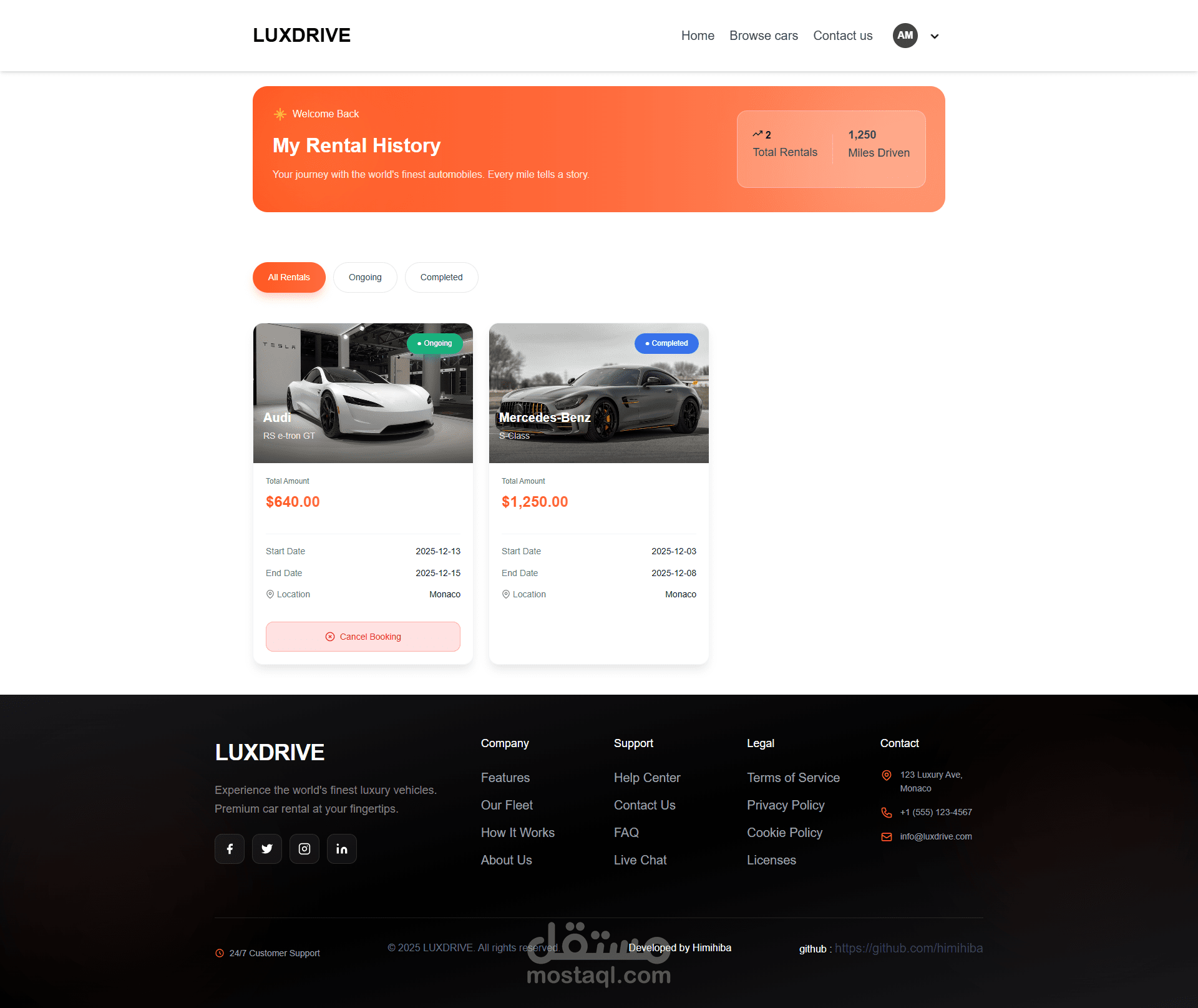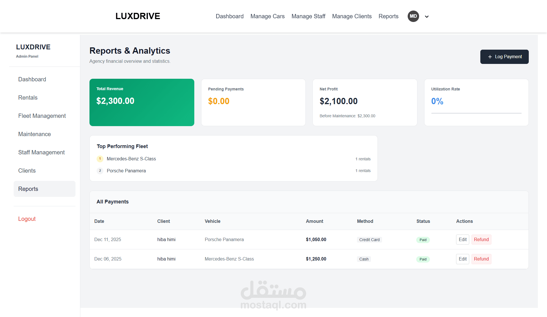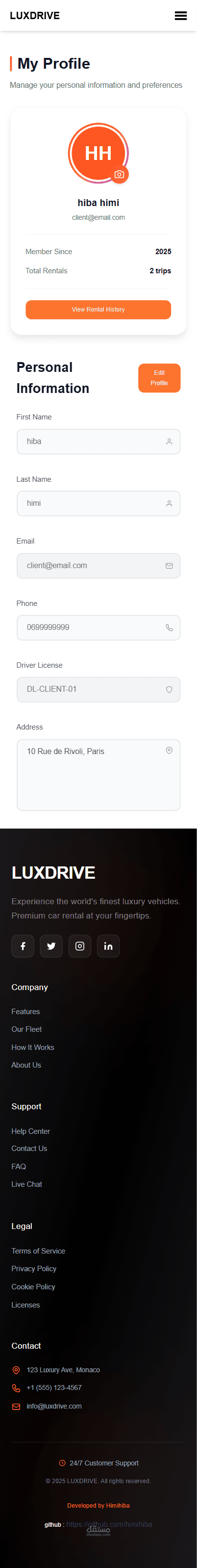 LUXDRIVE : نظام إدارة تأجير السيارات الفاخرة