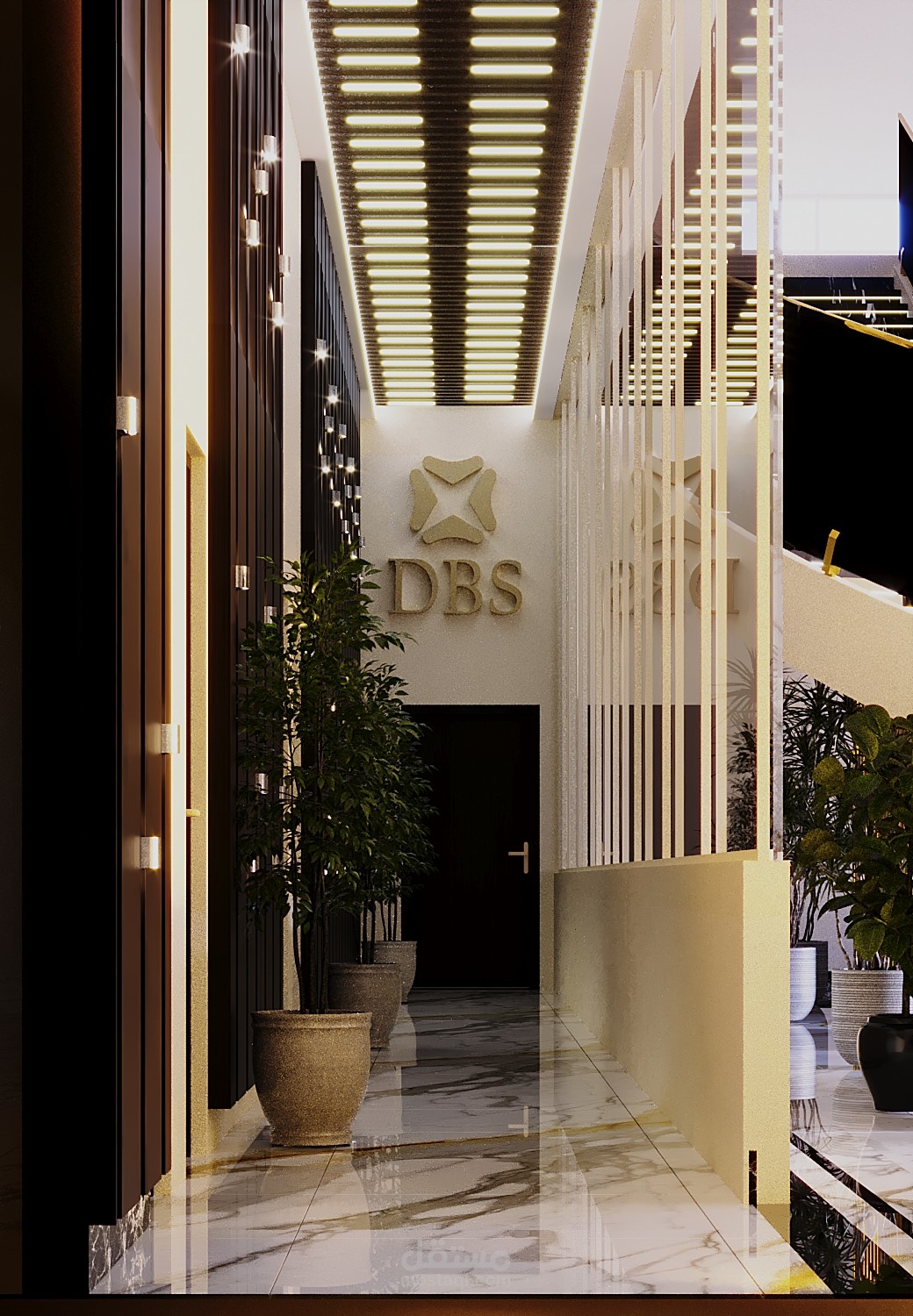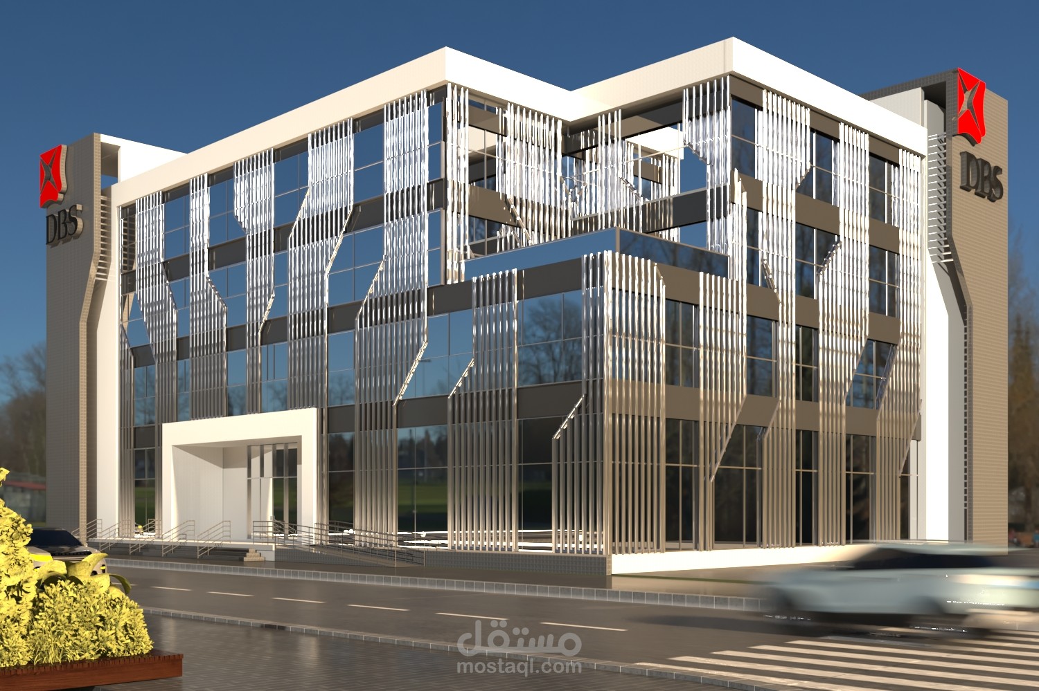 مشروع بنك يسمى DBS في مدينة السادس من اكتوبر تم تصميمة بأعلى جودة مع مراعاة الأكواد والإشتراطات لتصميم البنوك.