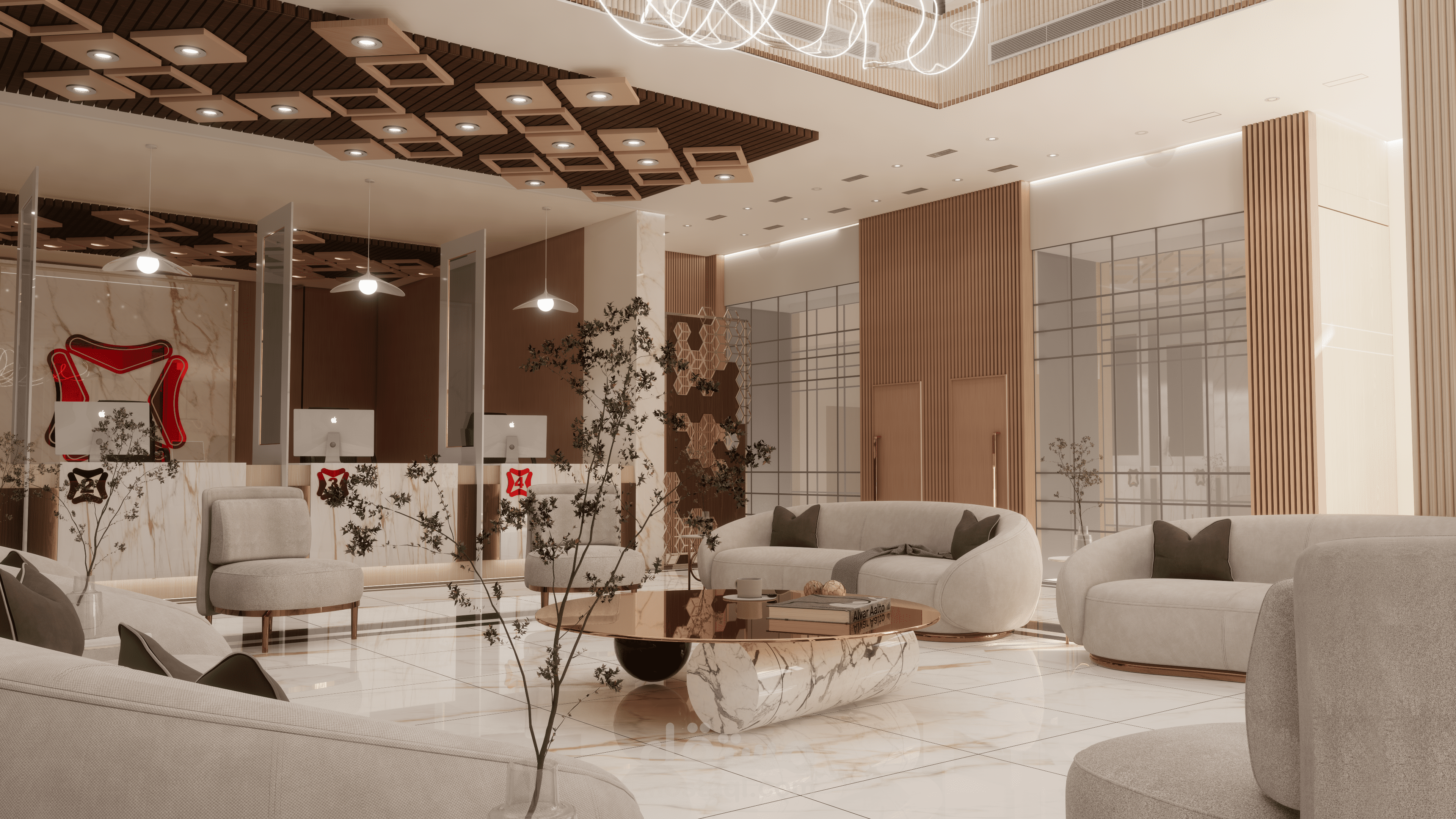 موضح بالصور اللوحات التنفيذية والمعمارية والصور ثلاثية الأبعاد للتصميم الخارجي ولبعض الفراغات الداخلية الأساسية للمشروع.