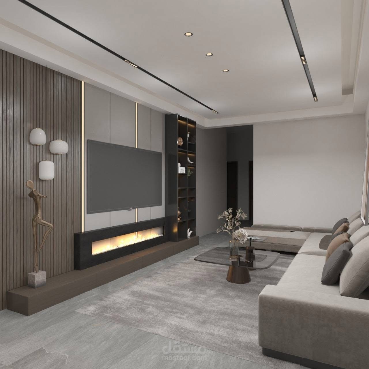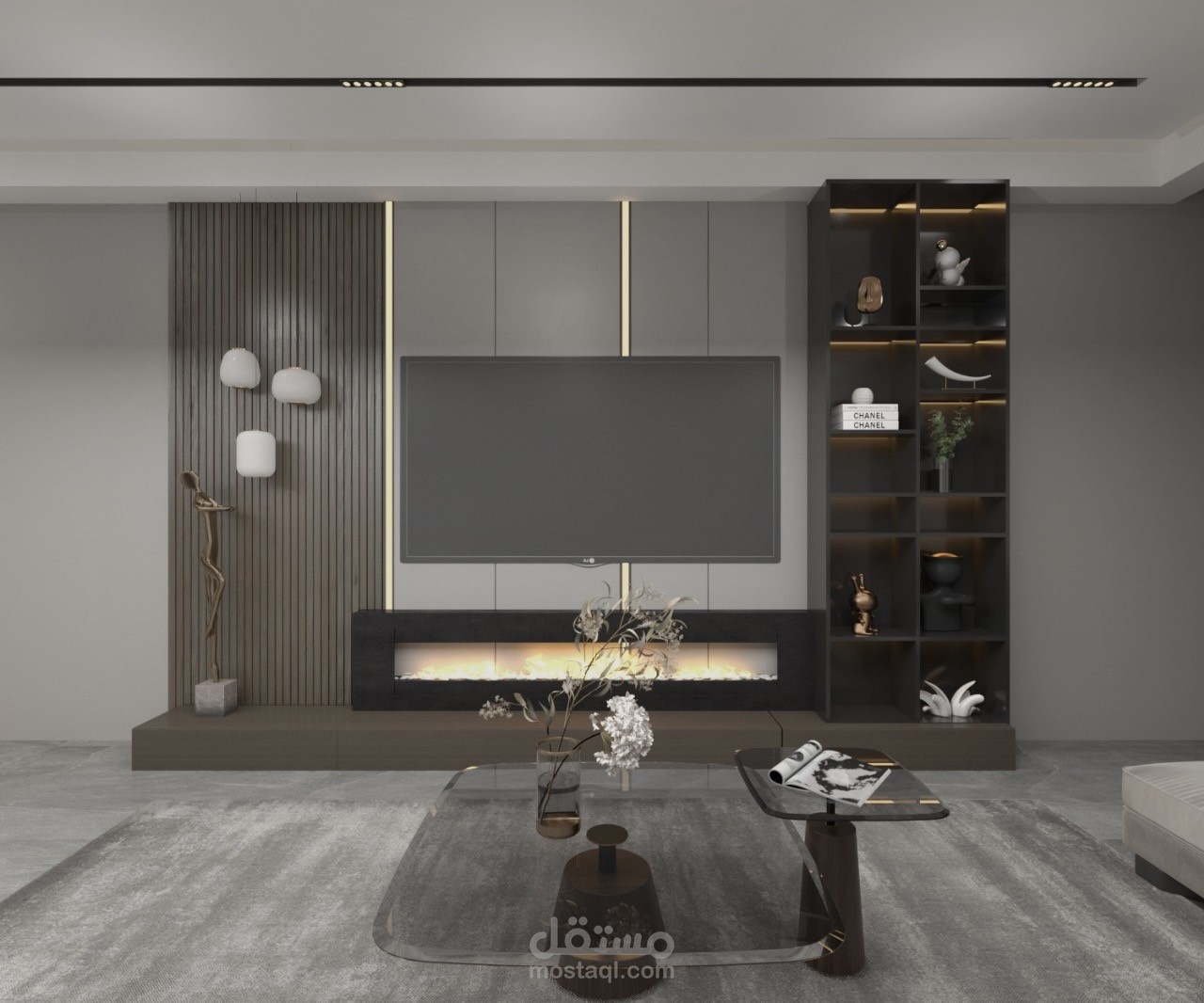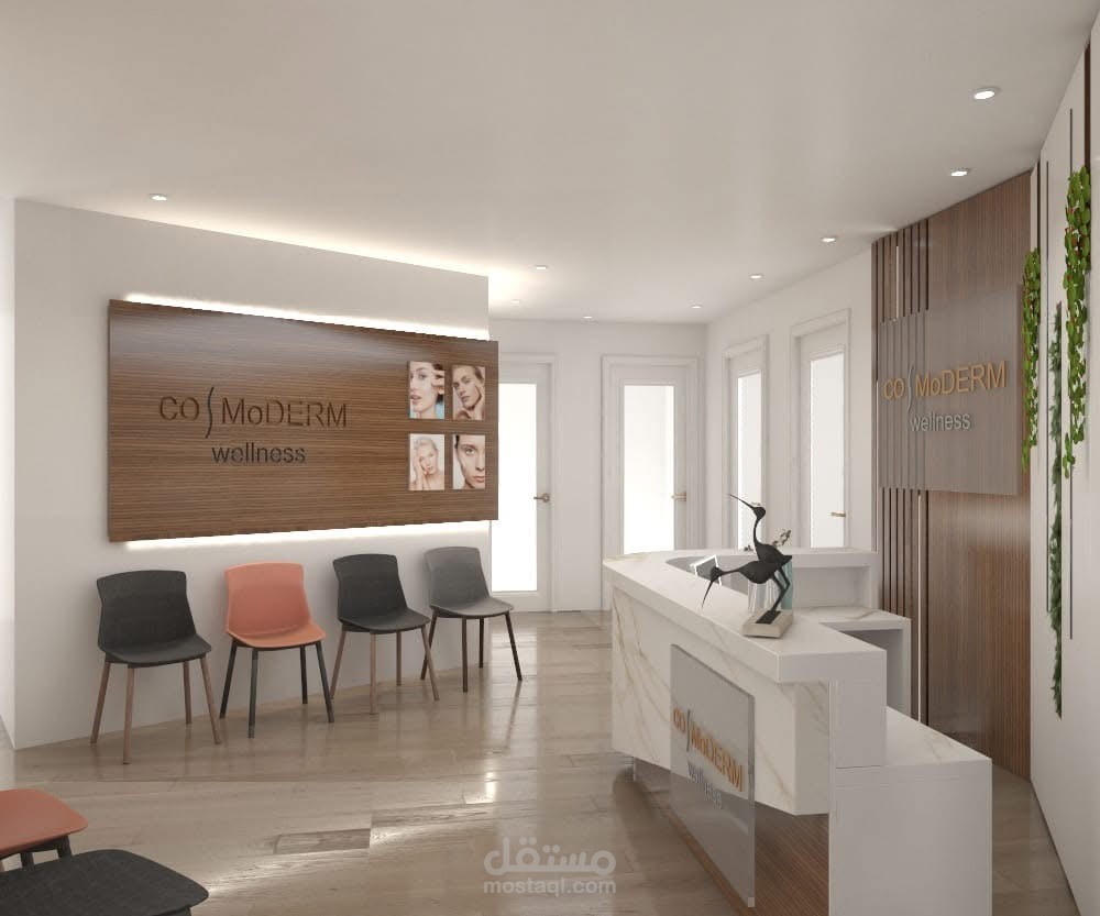 تم تصميم منطقة الاستقبال بشكل عصري بانسيابية ناعمة، مع دمج عناصر خضراء وإضاءة مدروسة لخلق بيئة ترحيبية هادئة ومناسبة لطبيعة المكان.