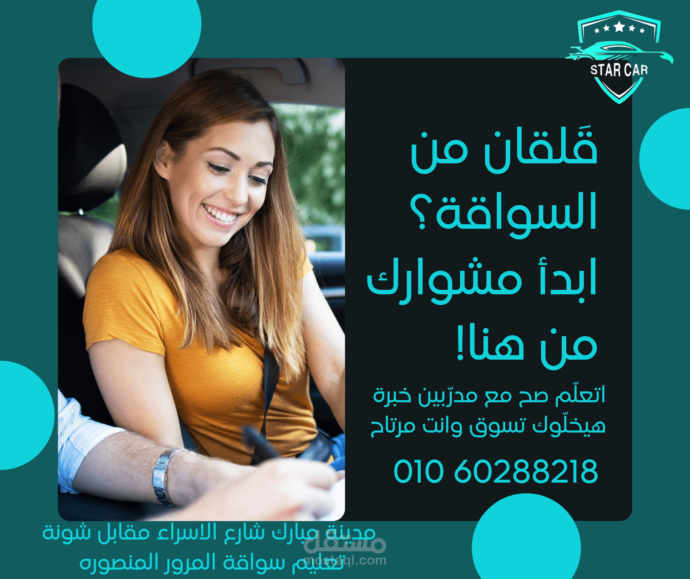 كتابة نصوص إعلانية وهوكات بتستهدف خوف المبتدئين من امتحان السواقة.