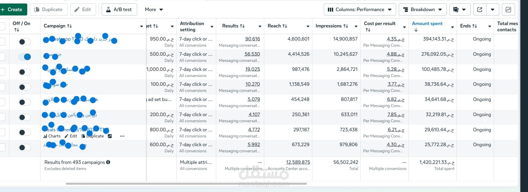 مراقبة يومية للأرقام ومؤشرات الأداء (CPC, CTR, CPM, ROAS).