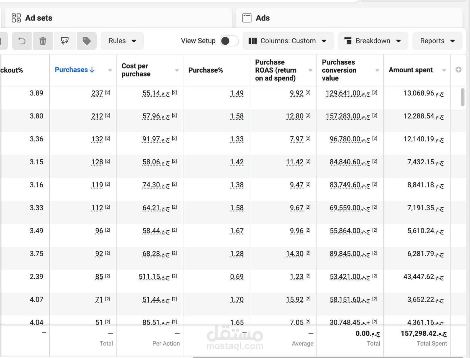 إيقاف الإعلانات الخاسرة لتقليل الهدر، ورفع ميزانية الإعلانات الرابحة (Scaling).