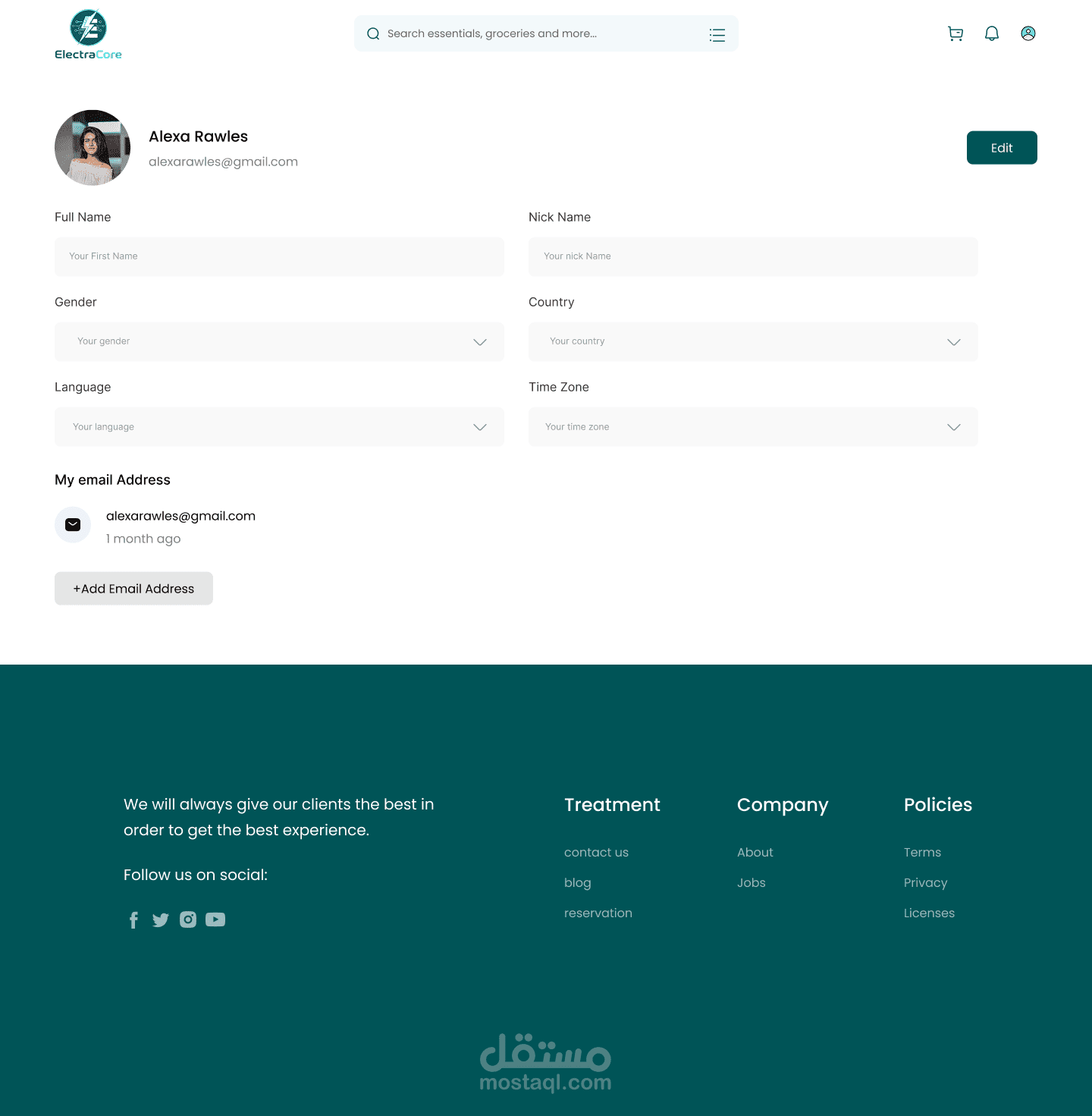 Electra Core هو موقع إلكتروني متخصص في بيع الأجهزة الإلكترونية، بيقدّم تجربة تسوق سهلة وسلسة من خلال تصميم مودرن وهادي ومريح للعين.