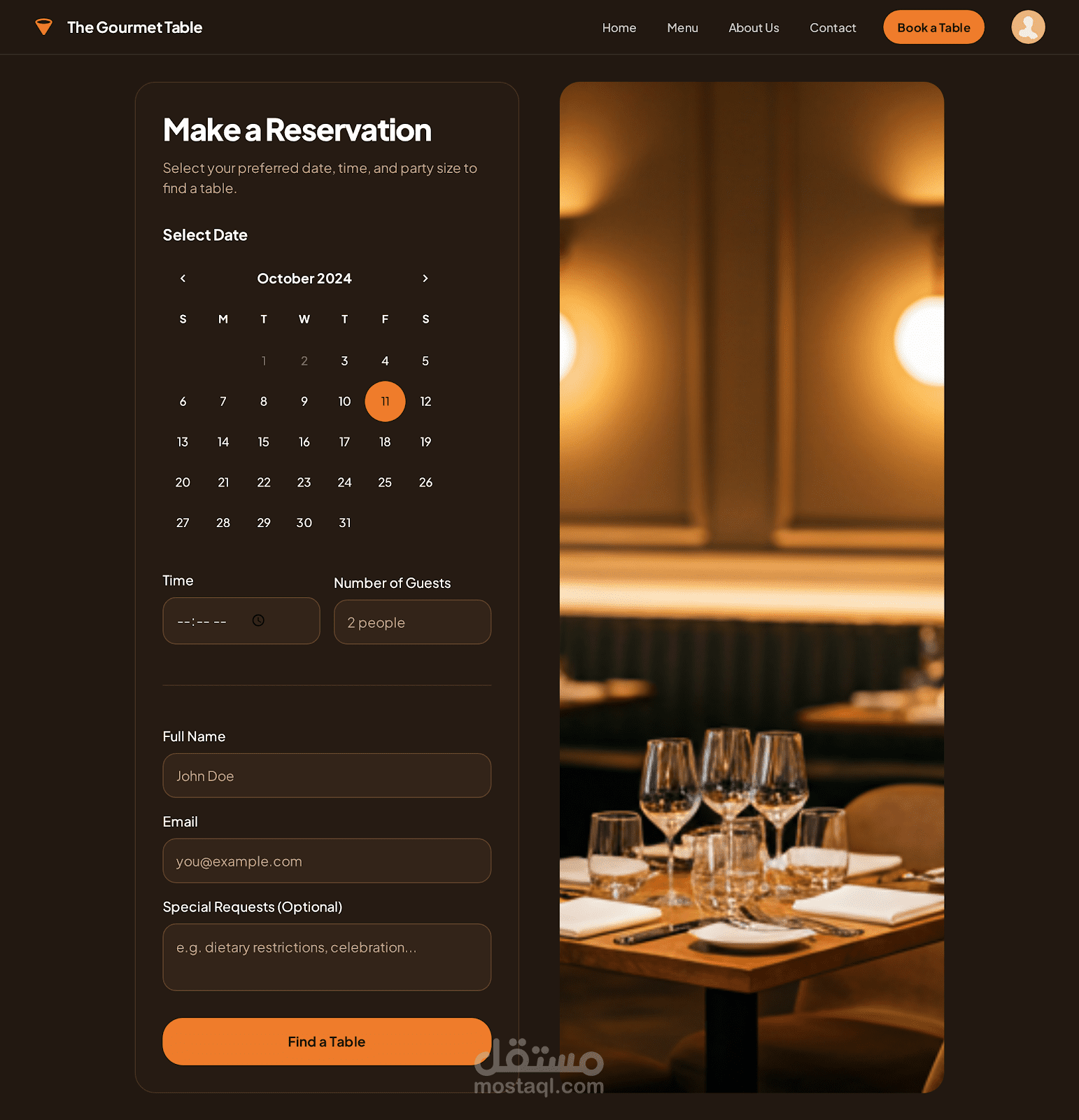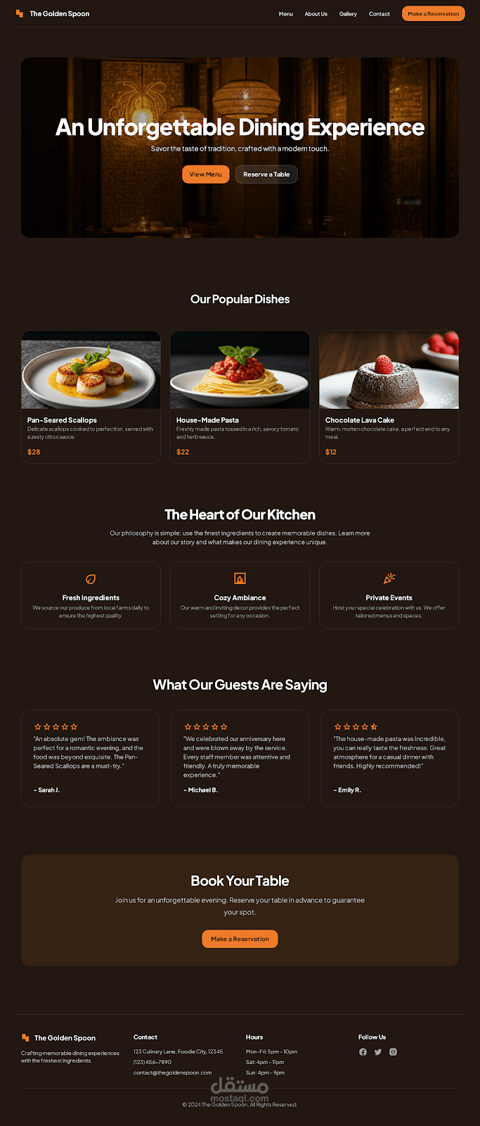 Golden Spoon هو موقع لمطعم راقي بيقدّم تجربة فريدة تجمع بين الأكل الفاخر والتصميم الأنيق.