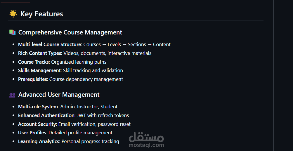 Multi-level Course Structure: Courses → Levels → Sections → Content