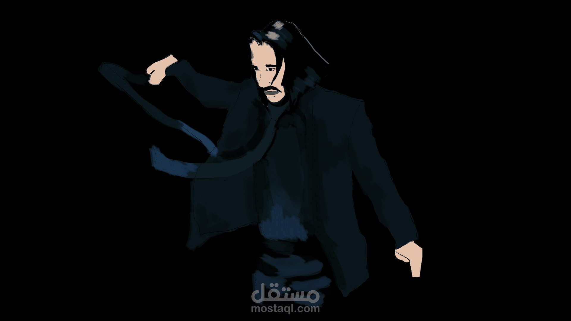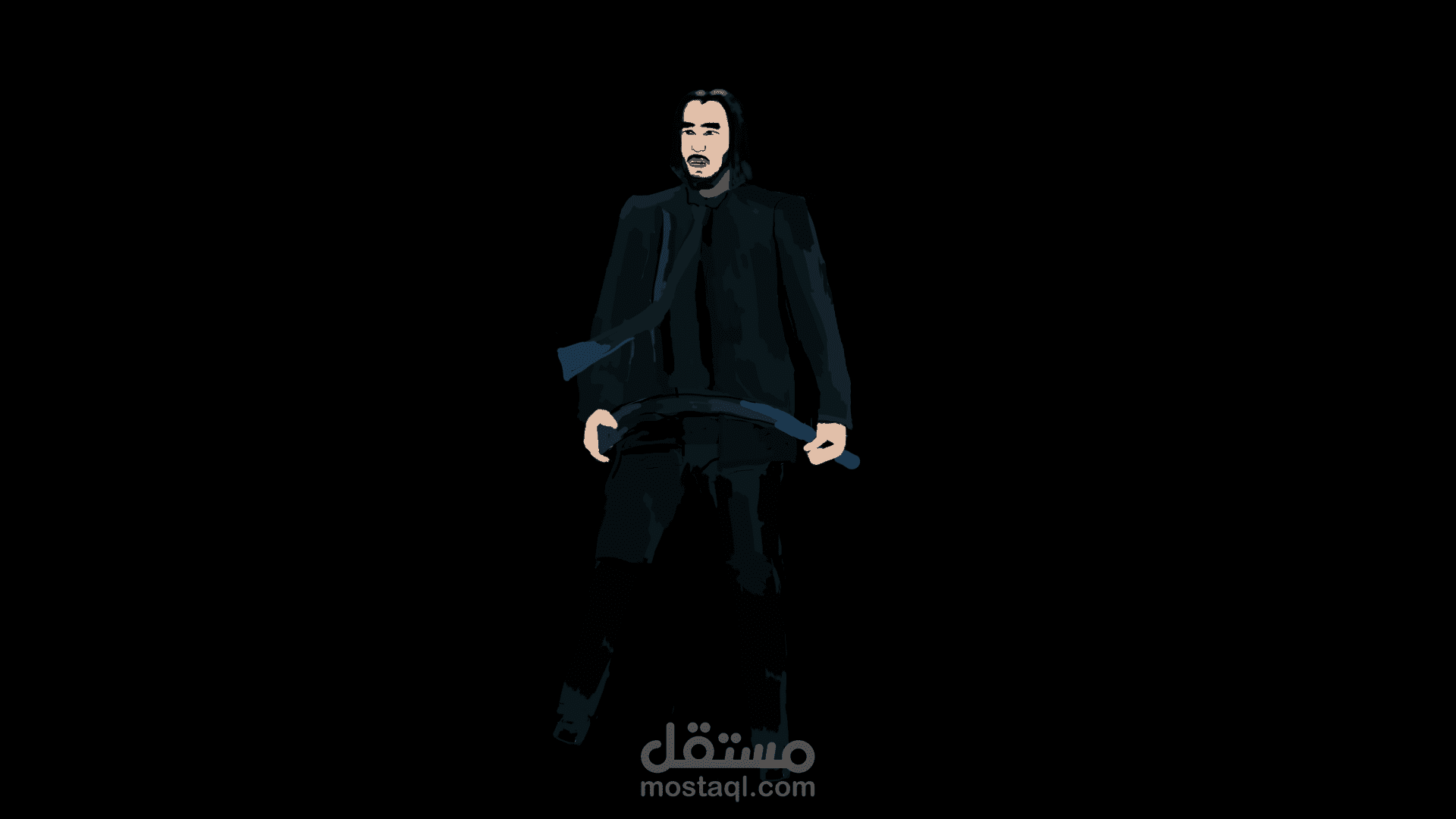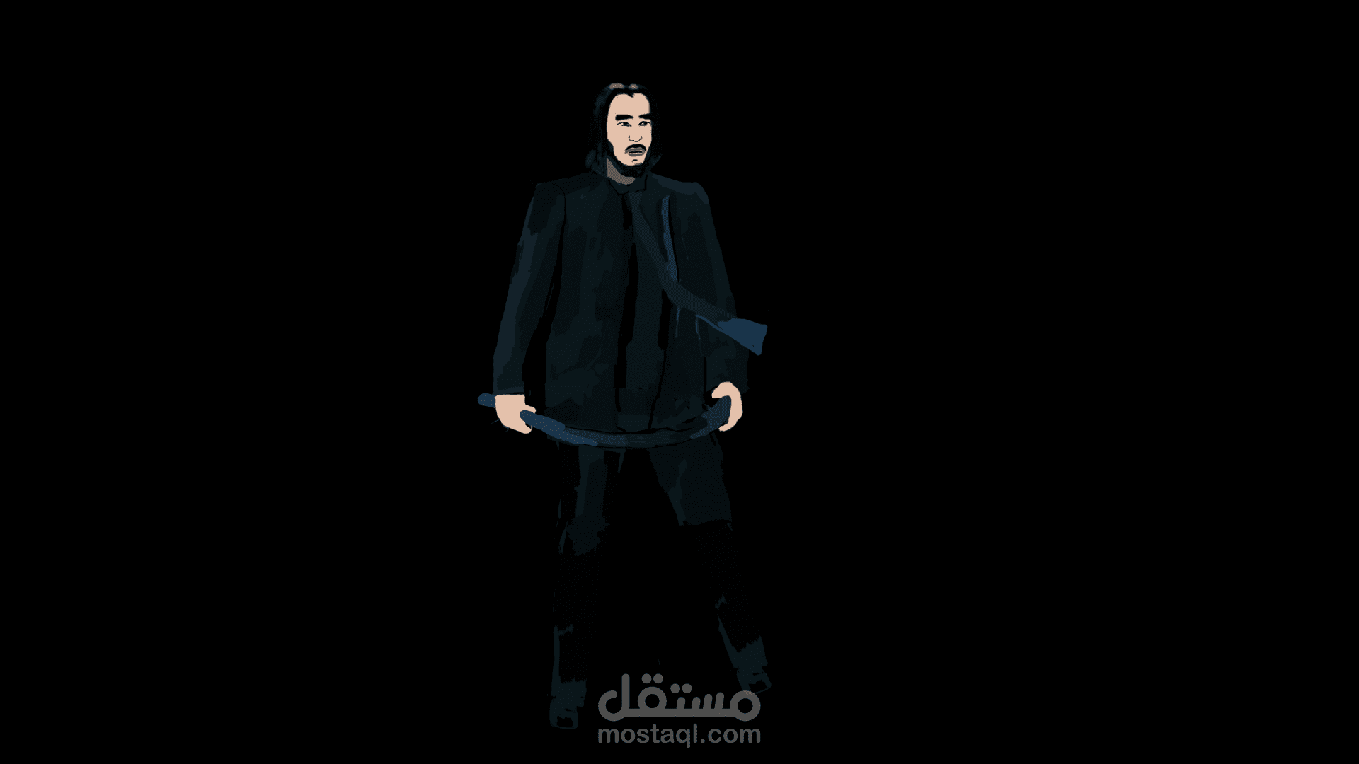 تصميم Illustration رقمي لشخصية سينمائية بأسلوب درامي واقعي (Stylized Realism)، مستوحى من أجواء أفلام الأكشن، مع تركيز على قوة التعبير، الإضاءة الداكنة، والهيئة الحركية للشخصية.