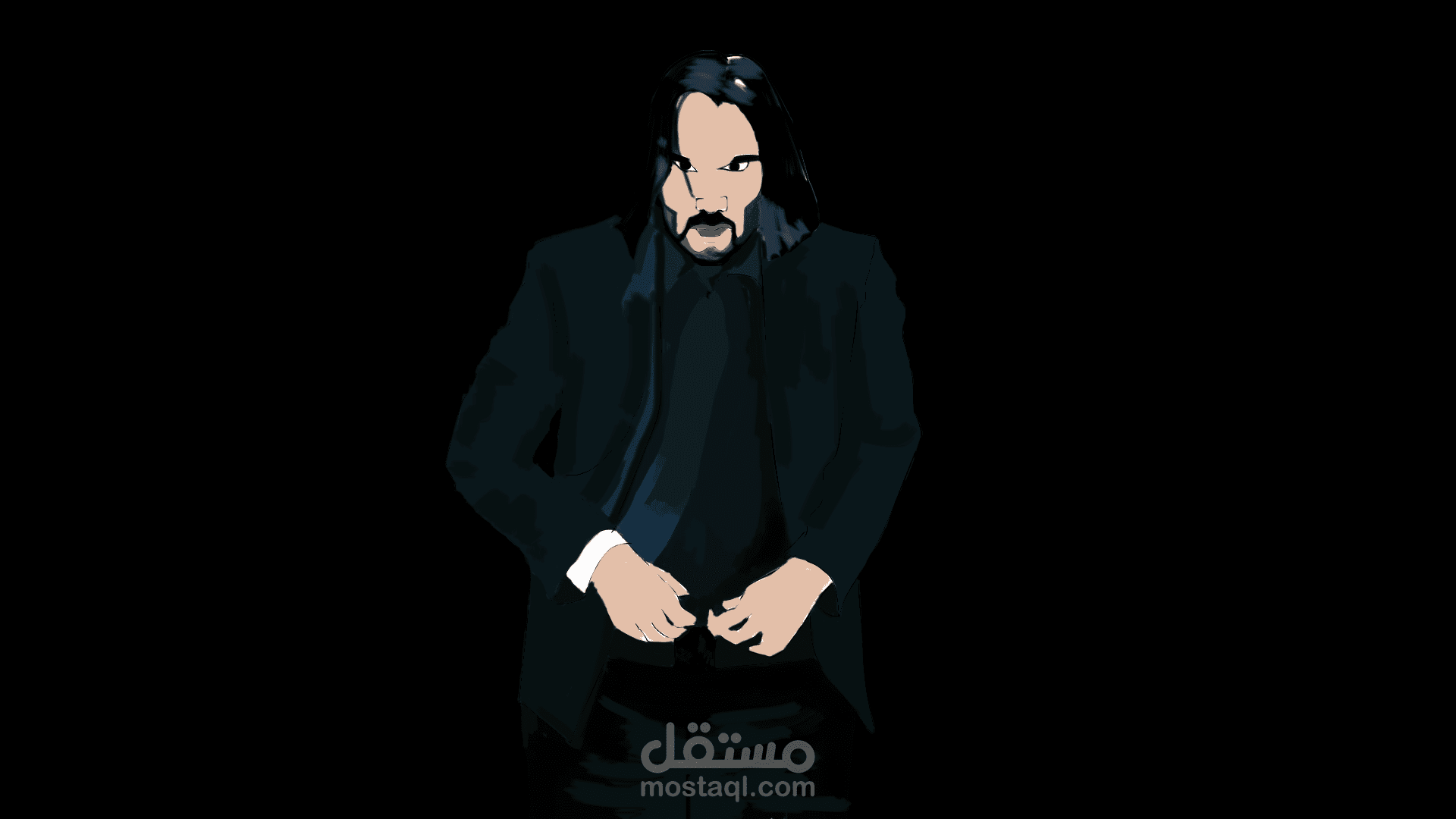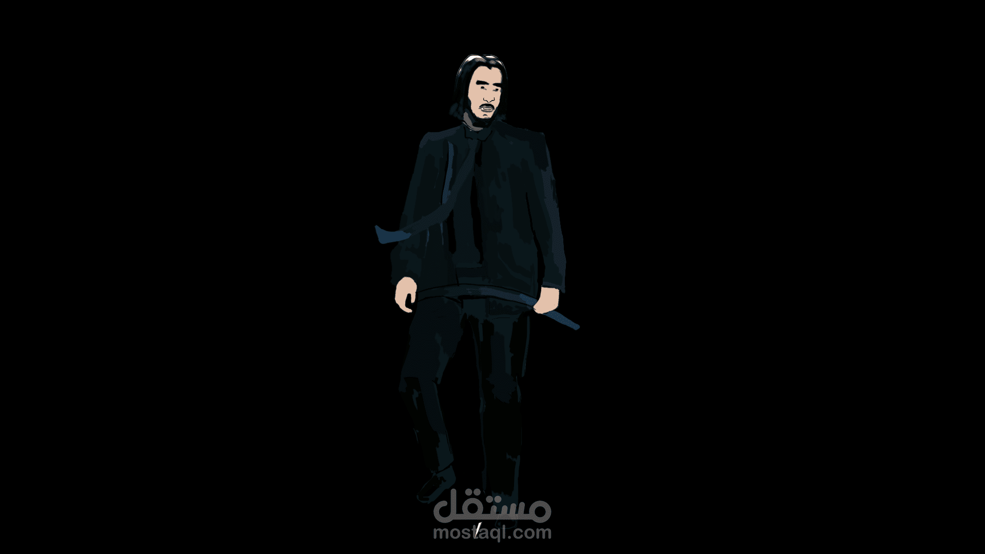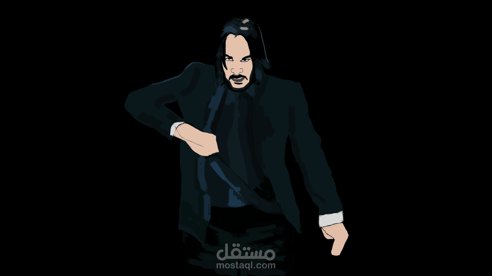 تصميم Illustration رقمي لشخصية سينمائية بأسلوب درامي واقعي (Stylized Realism)، مستوحى من أجواء أفلام الأكشن، مع تركيز على قوة التعبير، الإضاءة الداكنة، والهيئة الحركية للشخصية.