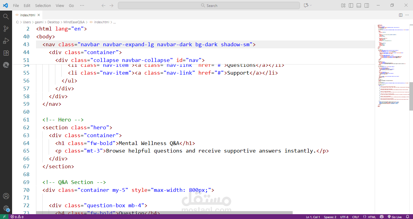 تطبيق ويب متكامل للاستشارات النفسية بنظام سؤال وجواب، يتيح للمستخدمين تصفّح أسئلة شائعة متعلّقة بالصحة النفسية والحصول على إجابات إيجابية وإرشادية غير طبية، مع إمكانية إضافة أسئلة جديدة غير مكرّرة.