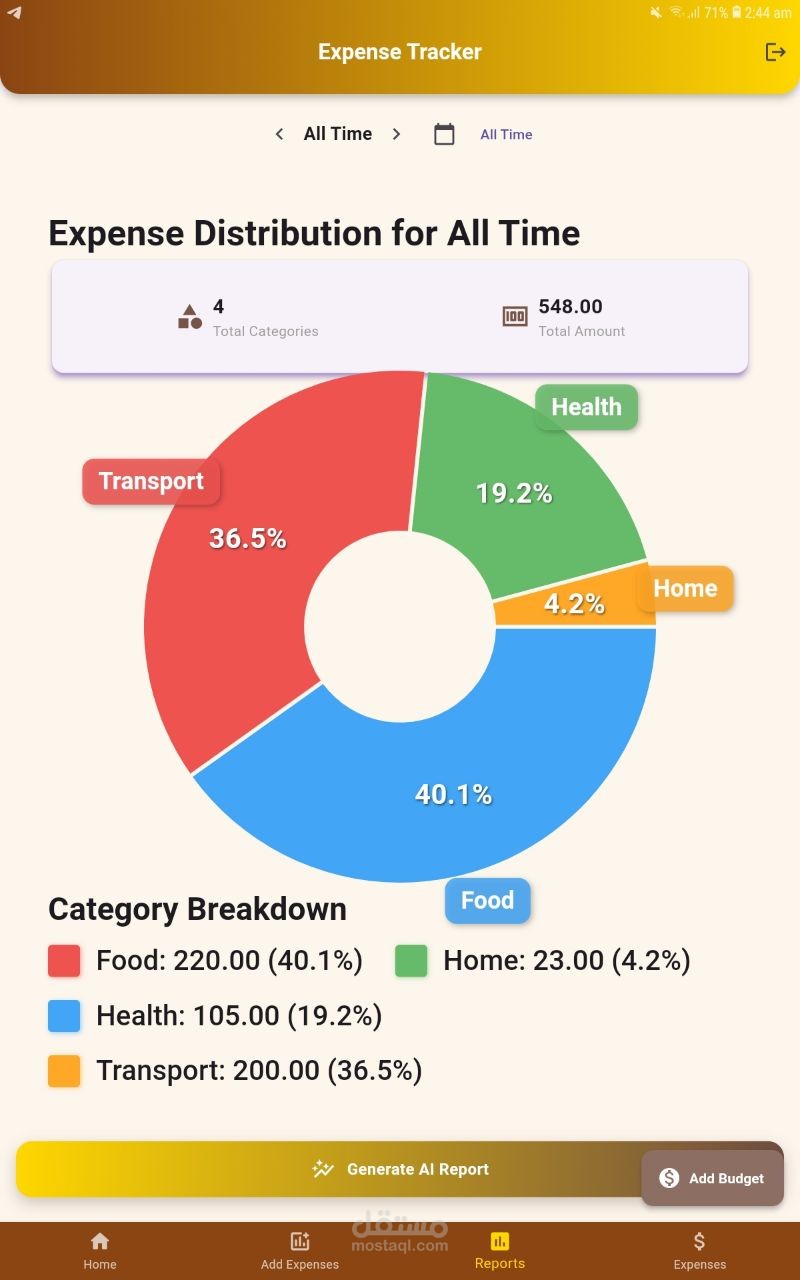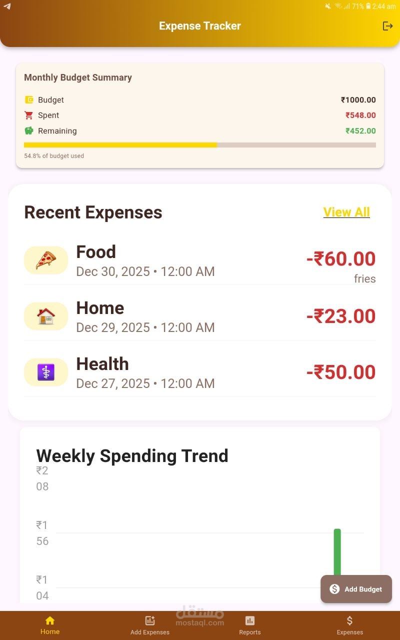 Expenses Tracker, Help Peoples to manage their personal expenses. Provide a very good Monthly and Weekly and Daily Reports By Ai. Very Attractive and modern Ui and easy to