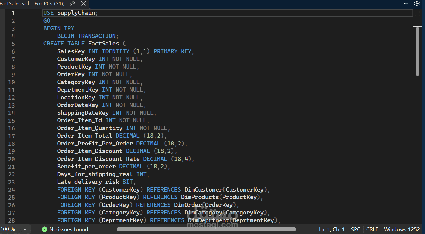 Data Model & Scripts: Fully documented T-SQL scripts for Fact/Dimension table creation and ETL process (uploaded to GitHub).