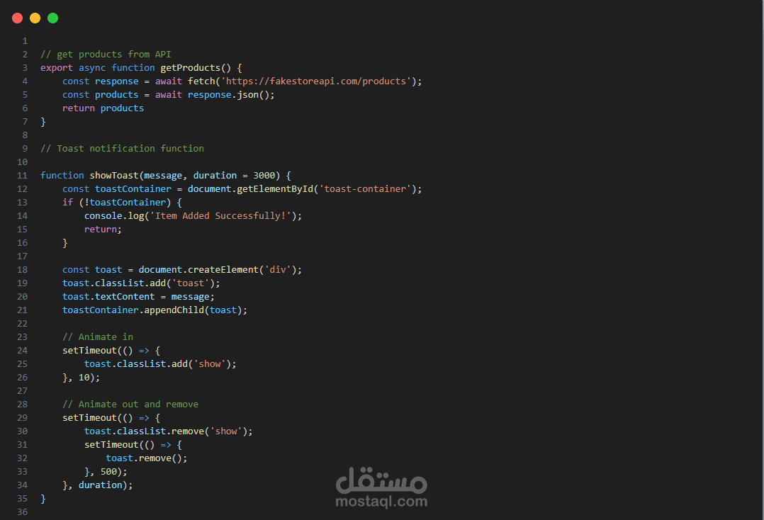 تطبيق ويب لمتجر إلكتروني يستخدم Store API لعرض المنتجات وإدارة عربة التسوق. يدعم الموقع إضافة المنتجات، تعديل الكميات، حذف العناصر، وعملية شراء افتراضية. تم تصميمه بتجربة مستخدم سلسة مع إشعارات تفاعلية (Toasts) وعرض ديناميكي لعربة التسوق.