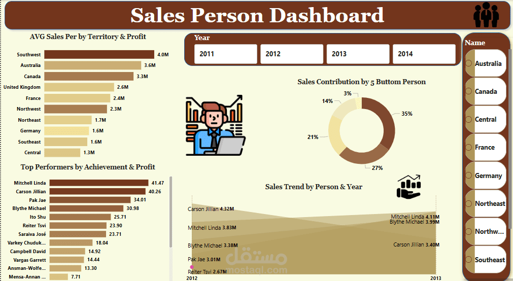 بعد ذلك تم استخدام Power BI لتحويل البيانات إلى تقارير ولوحات معلومات تفاعلية توضح: