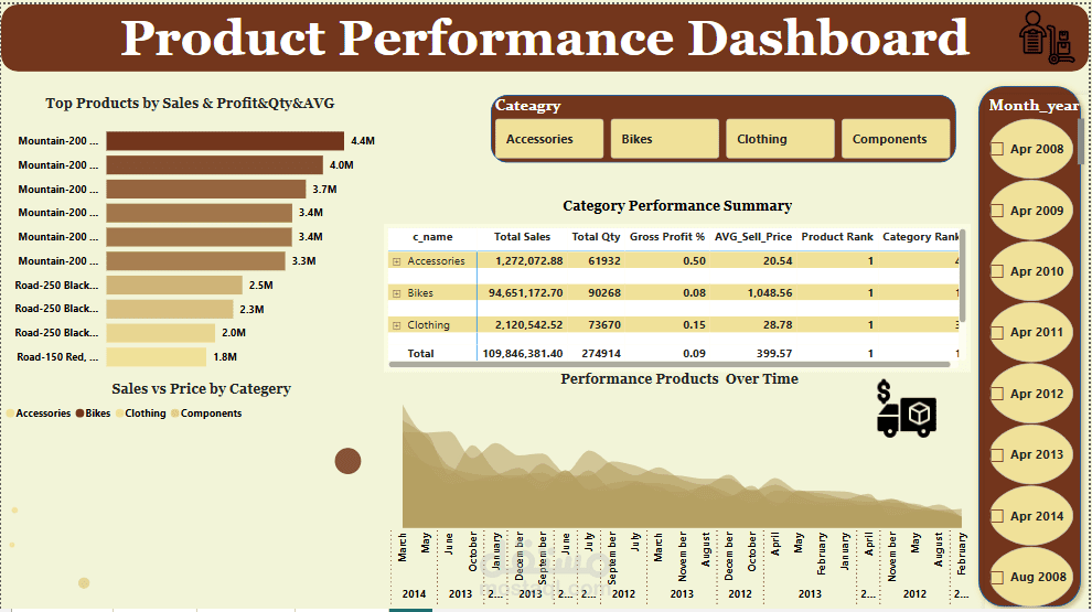 أداء المبيعات حسب نوع المنتج والفئة