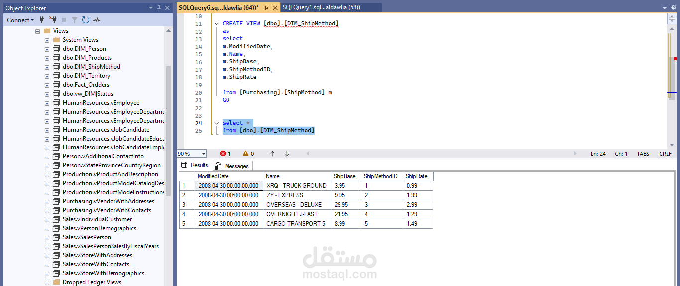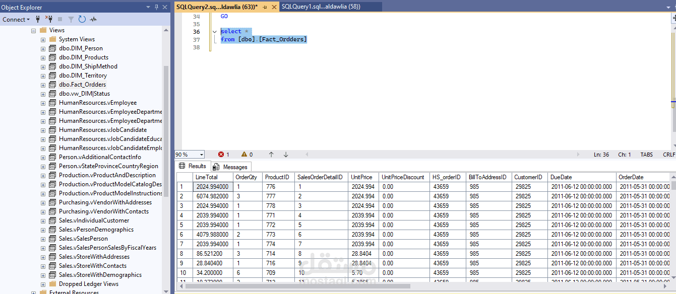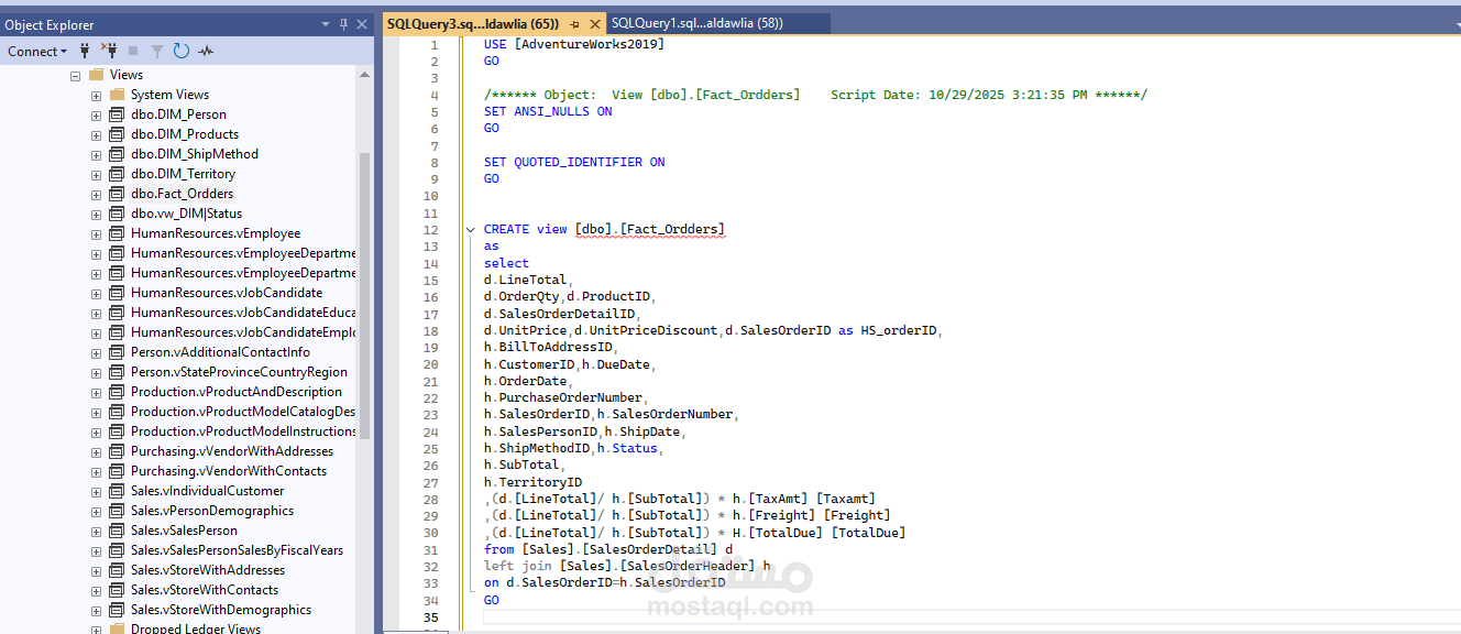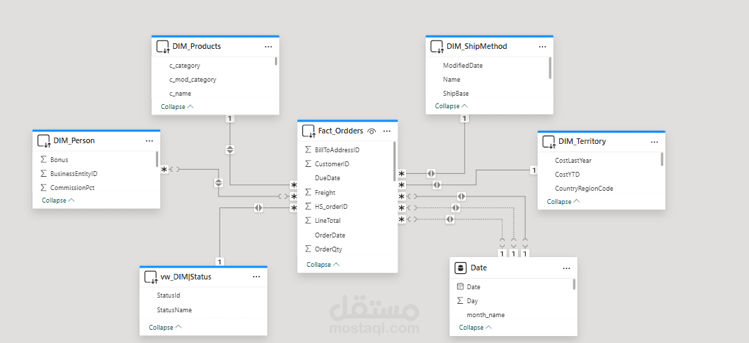 كما قمت بإنشاء مجموعة من SQL Views لتجميع البيانات وتبسيط عمليات التحليل، حيث توفر هذه الـ Views بيانات جاهزة للاستخدام في التقارير ولوحات المعلومات. شملت الـ Views ملخصات المبيعات، أداء المنتجات، والتحليل الزمني، مما ساهم في تحسين سرعة الاستعلامات وتقليل التعقيد عند الربط مع أدوات التحليل مثل